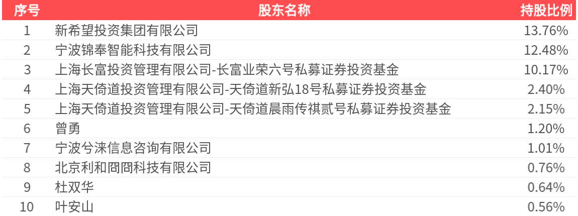 公司股东户数为3.04万户,前十大股东持股数量为7.01亿股,占总股本比例为45.13%,前十大股东持股情况如下: