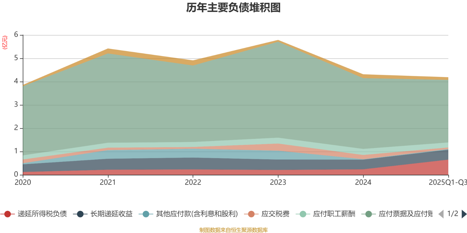 负债重大变化方面,截至2025年三季度末,公司应付票据及应付账款较上年末减少11.6%,占公司总资产比重下降1.88个百分点;递延所得税负债较上年末增加179.69%,占公司总资产比重上升1.21个百分点;应交税费较上年末减少63.5%,占公司总资产比重下降0.4个百分点;合同负债较上年末减少79.44%,占公司总资产比重下降0.24个百分点。