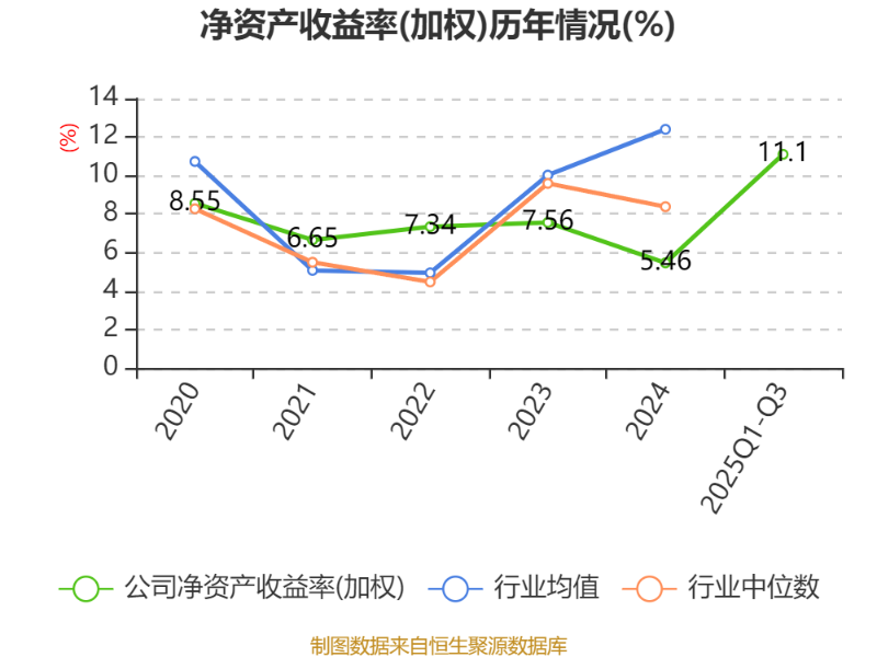 盈利能力方面, 2025年前三季度公司加权平均净资产收益率为11.1%,同比上升7.52个百分点。公司2025年前三季度投入资本回报率为10.93%,较上年同期上升8.32个百分点。