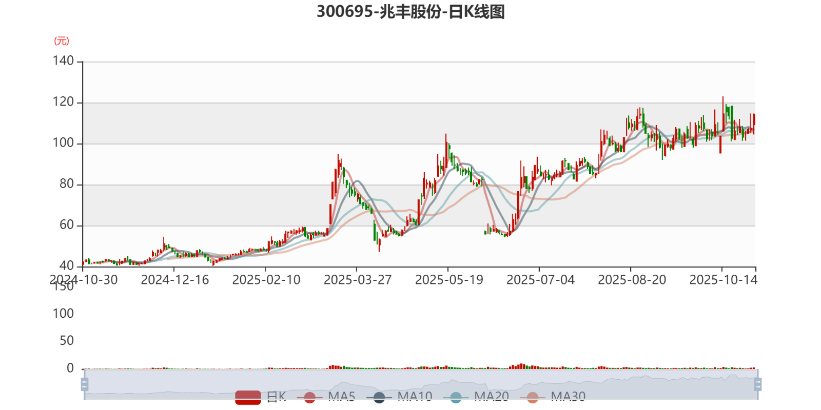 以10月29日收盘价计算,兆丰股份目前市盈率(TTM)约为33.26倍,市净率(LF)约4.1倍,市销率(TTM)约16.9倍。
