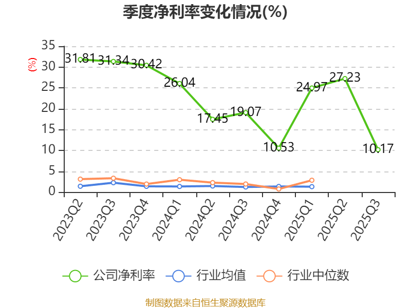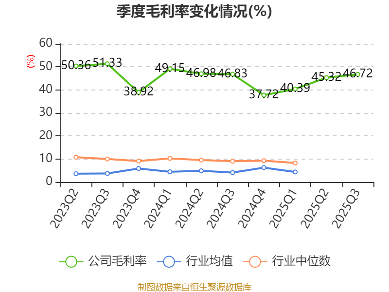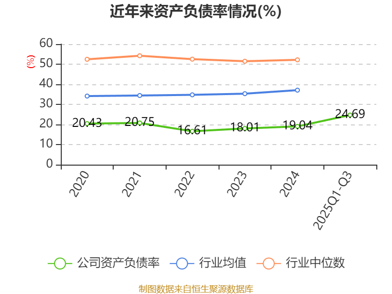 2025年前三季度,公司流动比率为3.44,速动比率为3.43。
