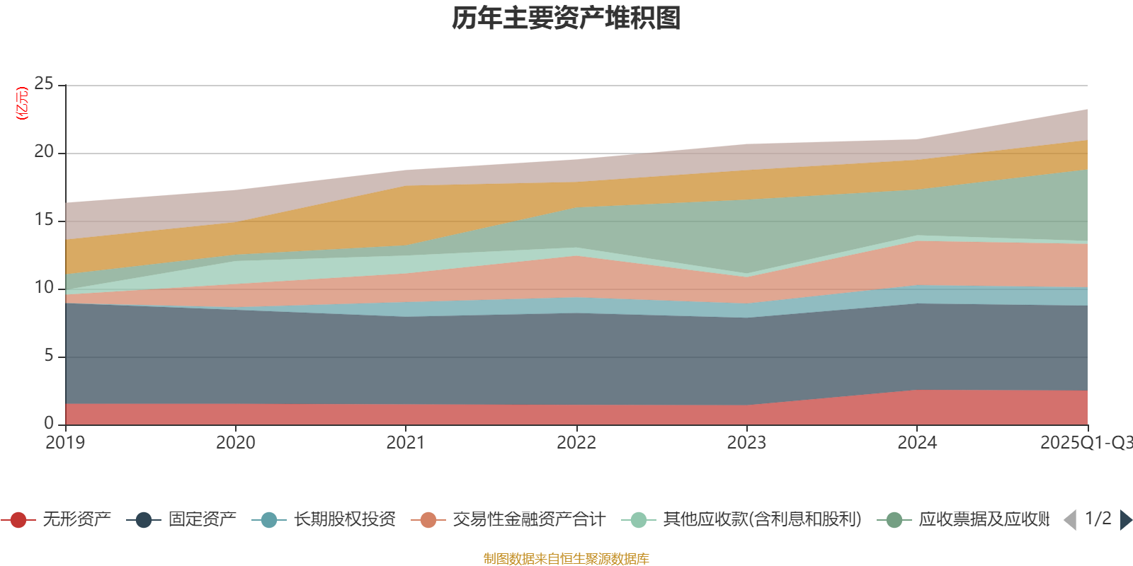 资产重大变化方面,截至2025年三季度末,公司应收票据及应收账款较上年末增加56.29%,占公司总资产比重上升6.63个百分点;固定资产较上年末减少1.74%,占公司总资产比重下降3.36个百分点;交易性金融资产合计较上年末减少1.67%,占公司总资产比重下降1.71个百分点;无形资产较上年末减少1.83%,占公司总资产比重下降1.35个百分点。