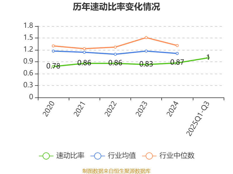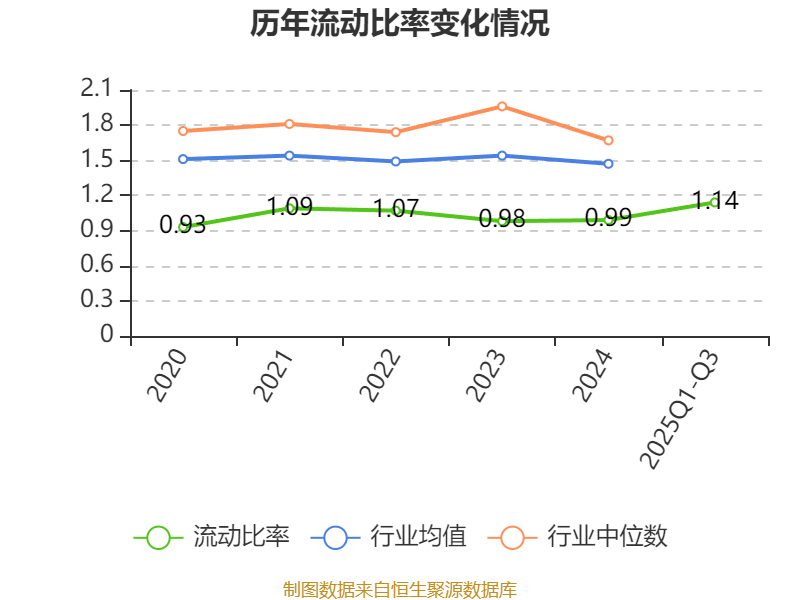 2025年前三季度,公司流动比率为1.14,速动比率为1。