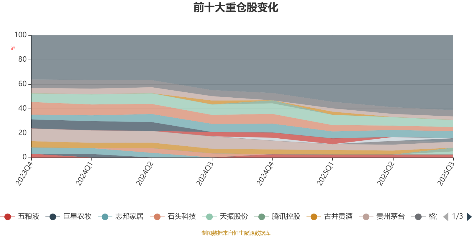 且持股标的较为稳定。截至2025年三季度末,基金十大重仓股分别是海信家电、海尔智家、顾家家居、贵州茅台、比音勒芬、腾讯控股、极兔速递-W、山西汾酒、天振股份、五粮液。