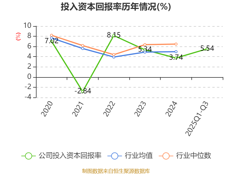 盈利能力方面, 2025年前三季度公司加权平均净资产收益率为5.77%,同比上升2.75个百分点。公司2025年前三季度投入资本回报率为5.54%,较上年同期上升2.78个百分点。