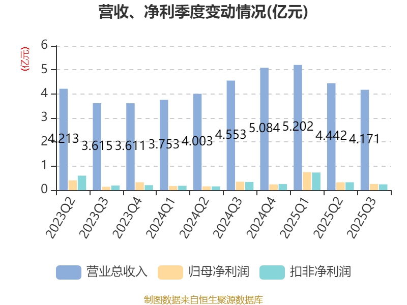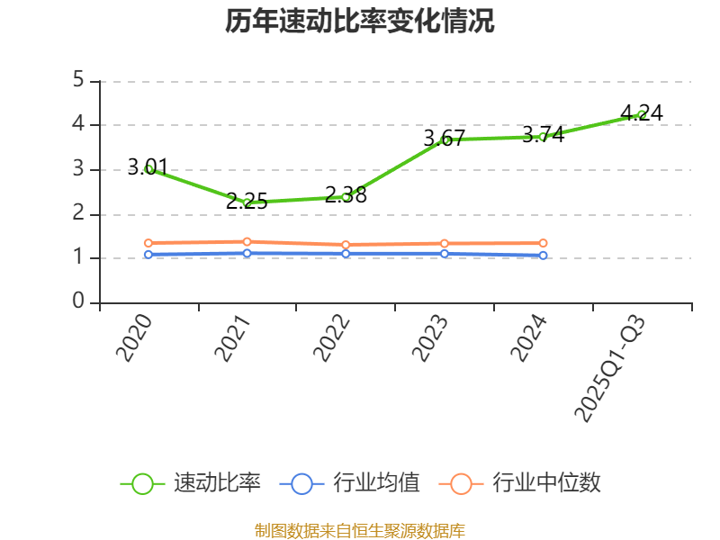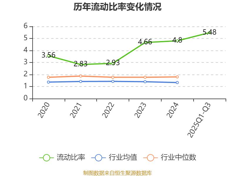 2025年前三季度,公司流动比率为5.48,速动比率为4.24。