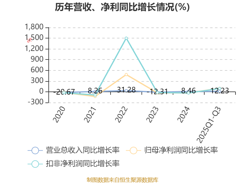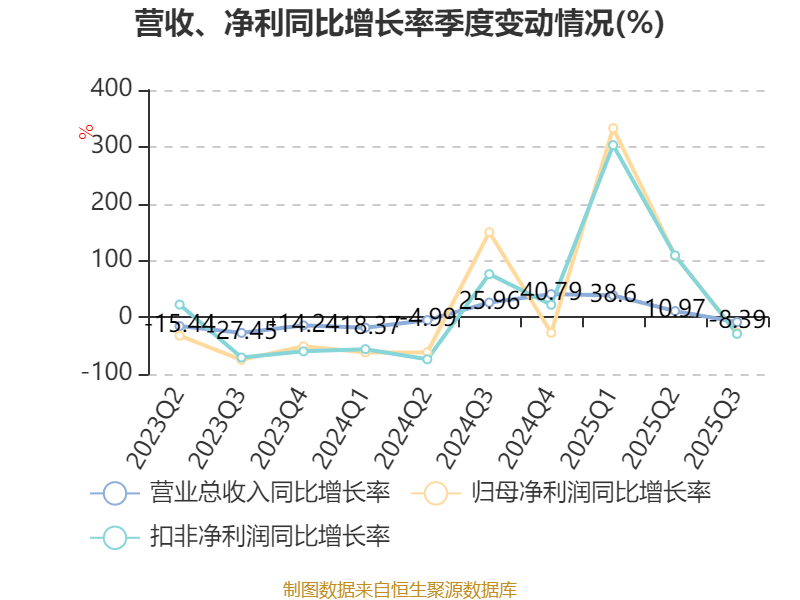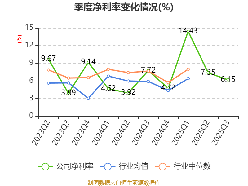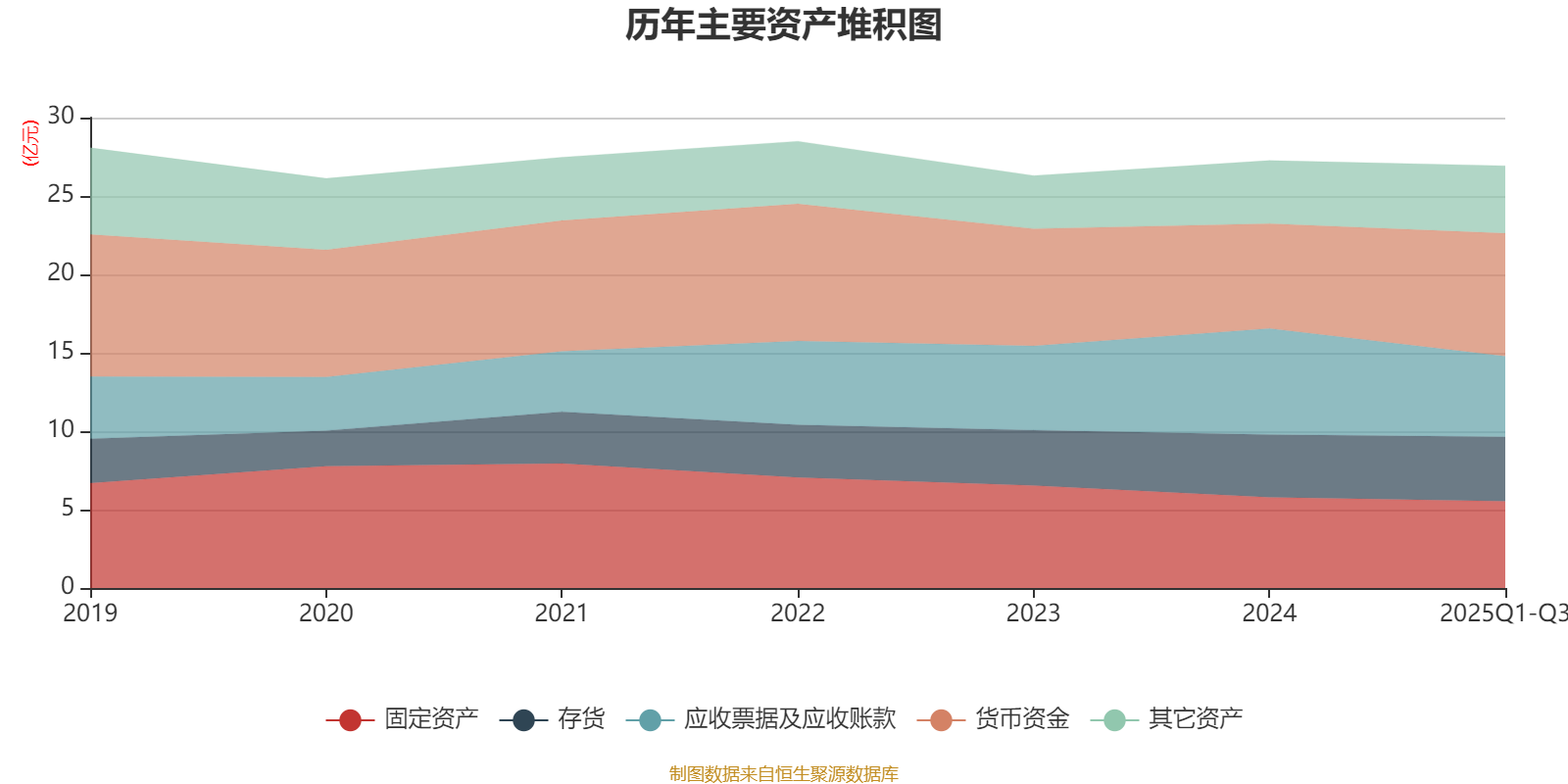 资产重大变化方面,截至2025年三季度末,公司应收票据及应收账款较上年末减少23.99%,占公司总资产比重下降5.72个百分点;货币资金较上年末增加17.2%,占公司总资产比重上升4.58个百分点;预付款项较上年末增加98.1%,占公司总资产比重上升1.01个百分点;固定资产较上年末减少4.42%,占公司总资产比重下降0.68个百分点。