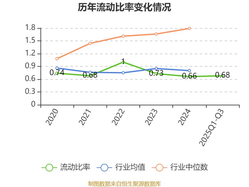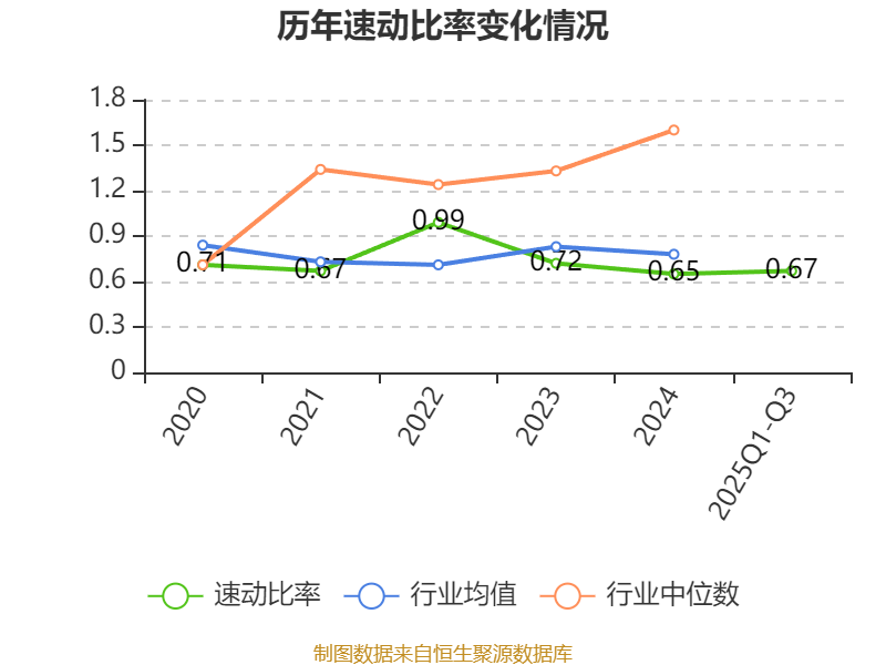 2025年前三季度,公司流动比率为0.68,速动比率为0.67。
