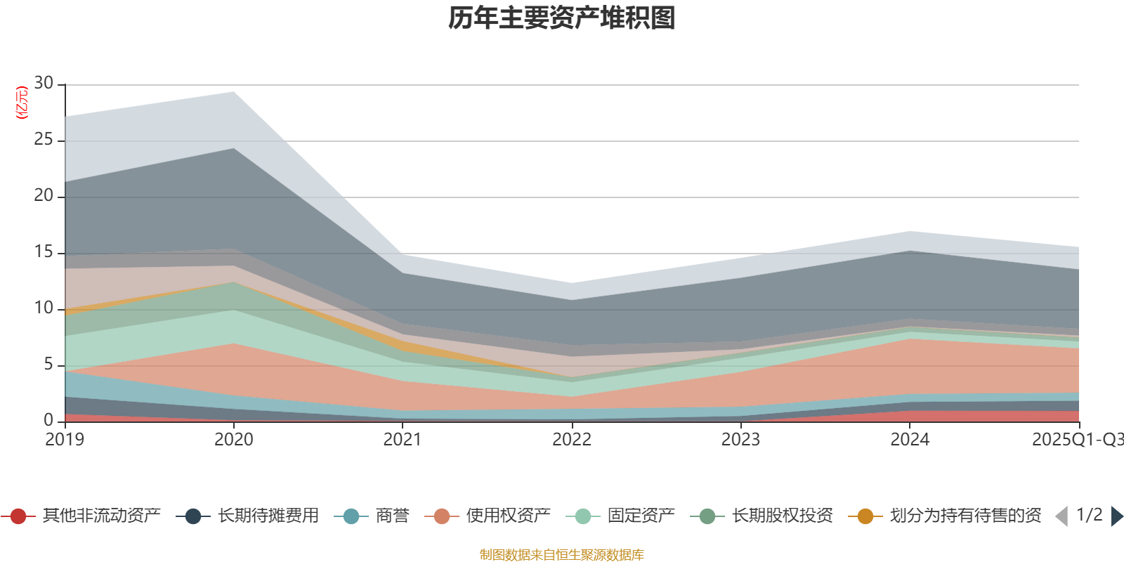 资产重大变化方面,截至2025年三季度末,公司使用权资产较上年末减少19.81%,占公司总资产比重下降3.6个百分点;货币资金较上年末减少12.76%,占公司总资产比重下降1.69个百分点;长期待摊费用较上年末增加15.58%,占公司总资产比重上升1.21个百分点;应收票据及应收账款较上年末增加25.54%,占公司总资产比重上升0.9个百分点。