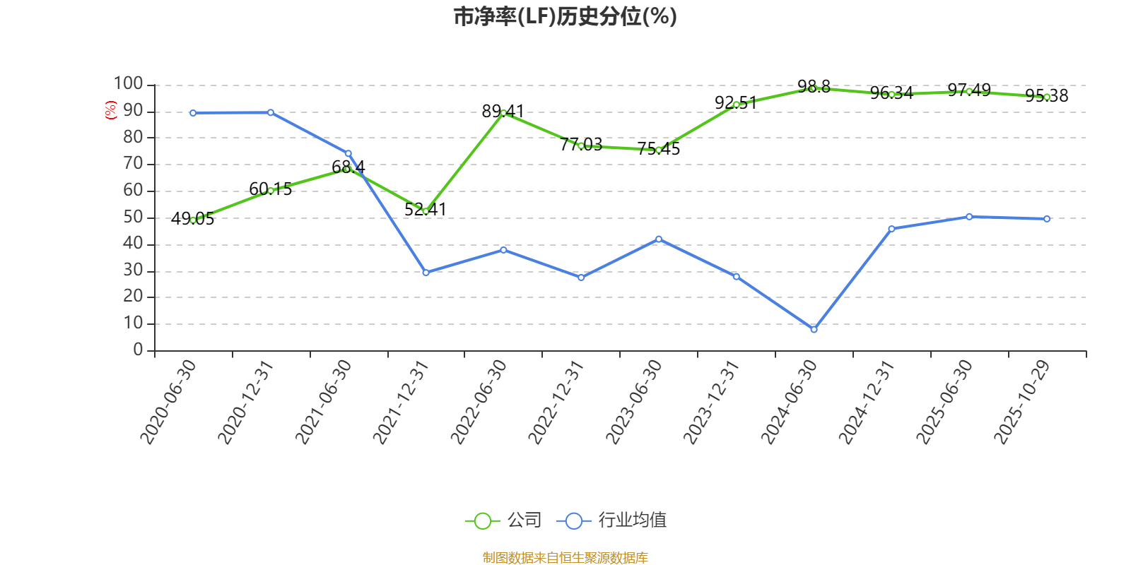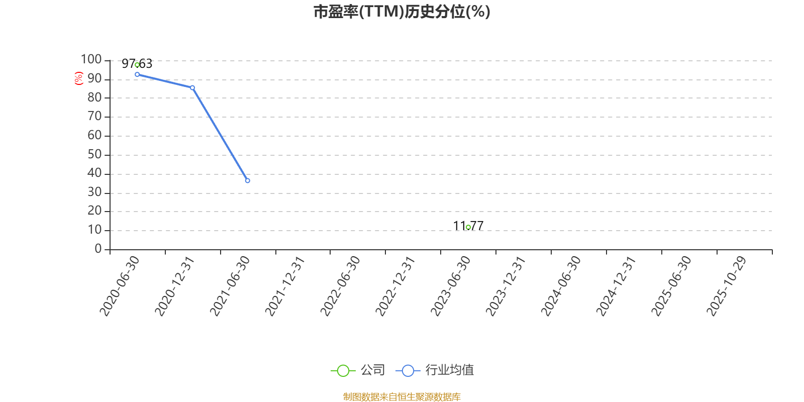市盈率、市净率为负时,不显示当期分位数,会导致折线图中断。
