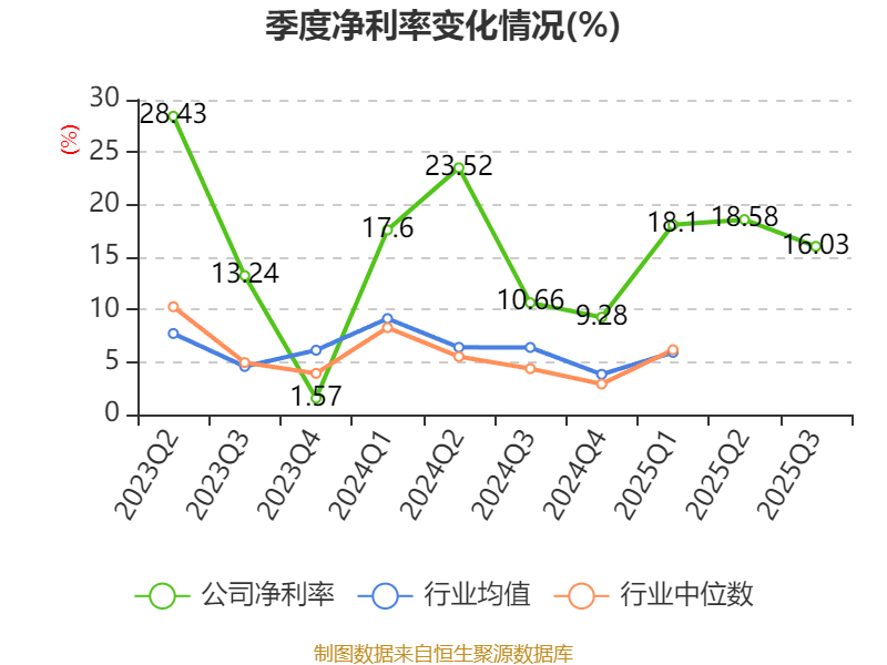 2025年前三季度,公司流动比率为18.17,速动比率为17.05。