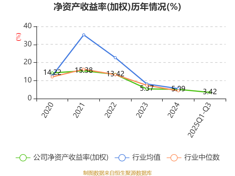盈利能力方面, 2025年前三季度公司加权平均净资产收益率为3.42%,同比下降0.89个百分点。公司2025年前三季度投入资本回报率为3.18%,较上年同期下降0.28个百分点。