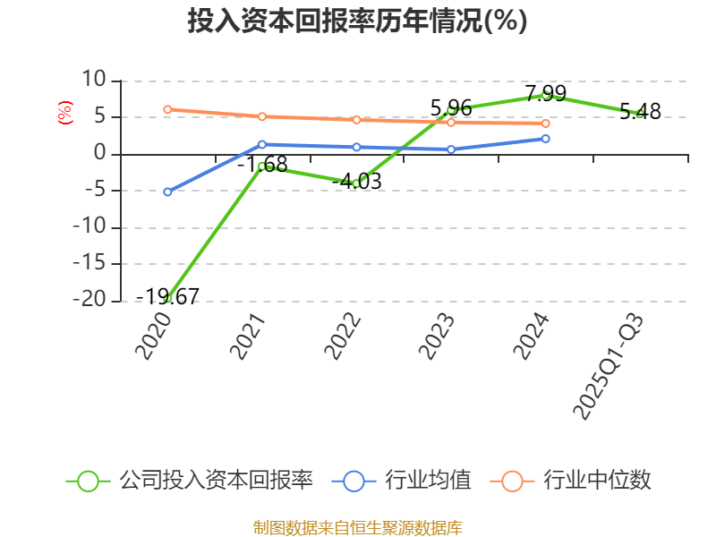 盈利能力方面, 2025年前三季度公司加权平均净资产收益率为8.1%,同比上升1个百分点。公司2025年前三季度投入资本回报率为5.48%,较上年同期下降0.86个百分点。