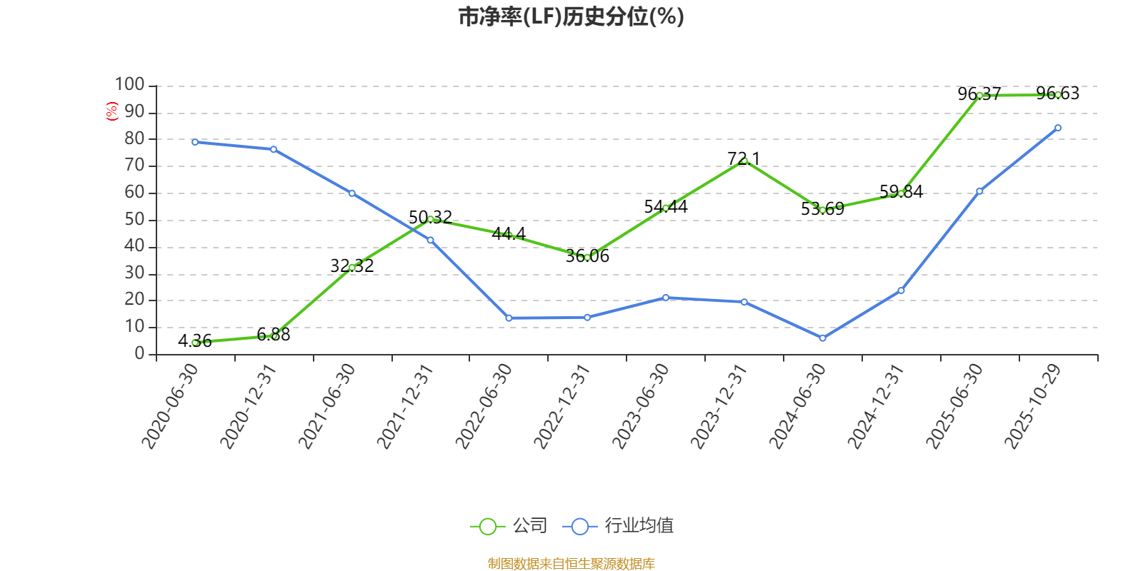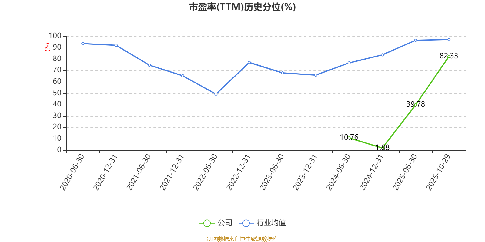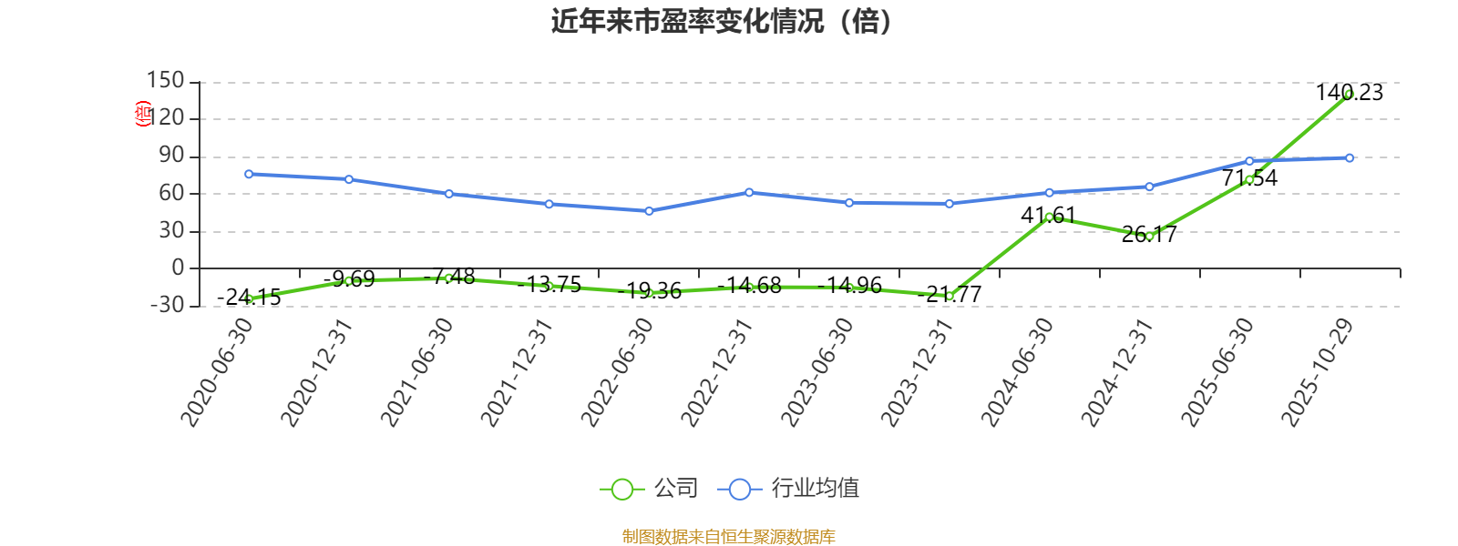 市盈率、市净率为负时,不显示当期分位数,会导致折线图中断。