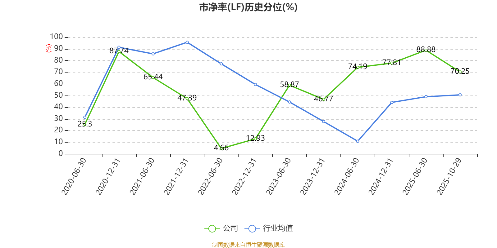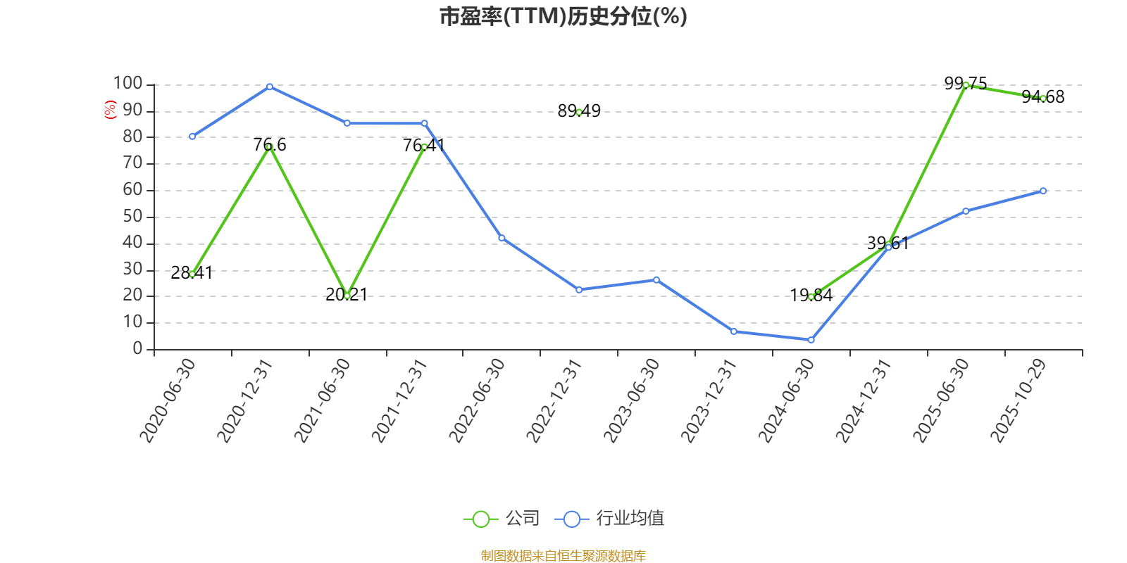 市盈率、市净率为负时,不显示当期分位数,会导致折线图中断。
