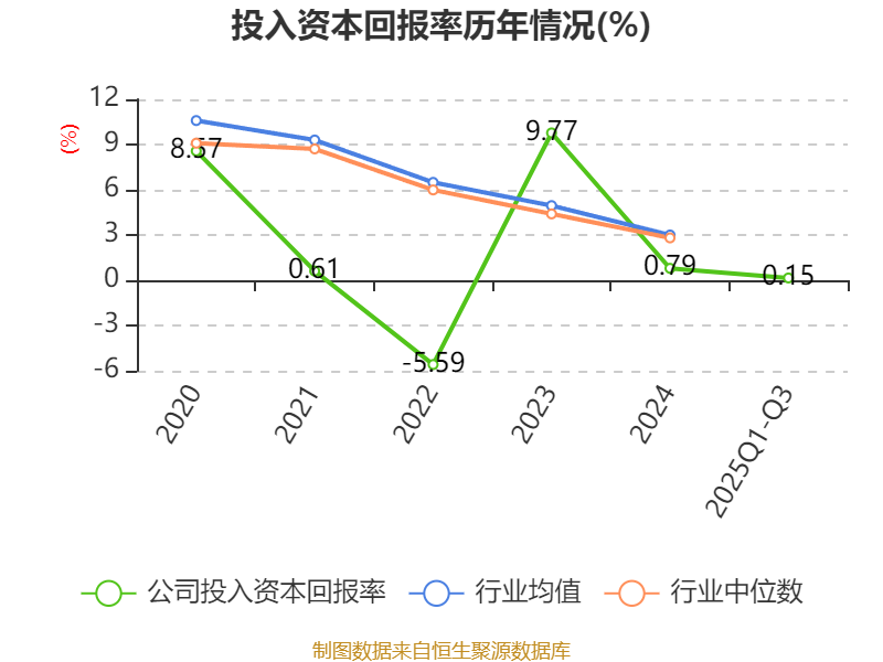 盈利能力方面, 2025年前三季度公司加权平均净资产收益率为0.05%,同比下降0.44个百分点。公司2025年前三季度投入资本回报率为0.15%,较上年同期下降0.11个百分点。