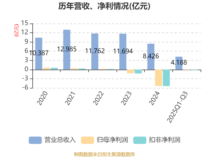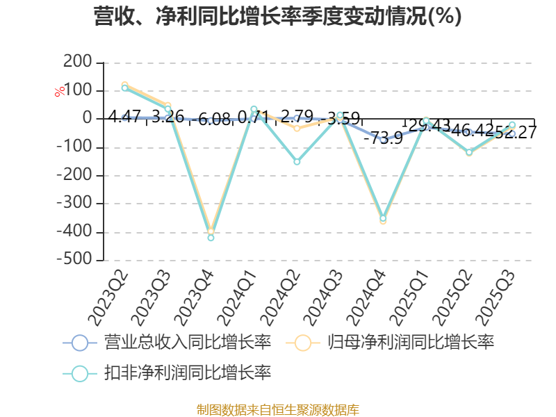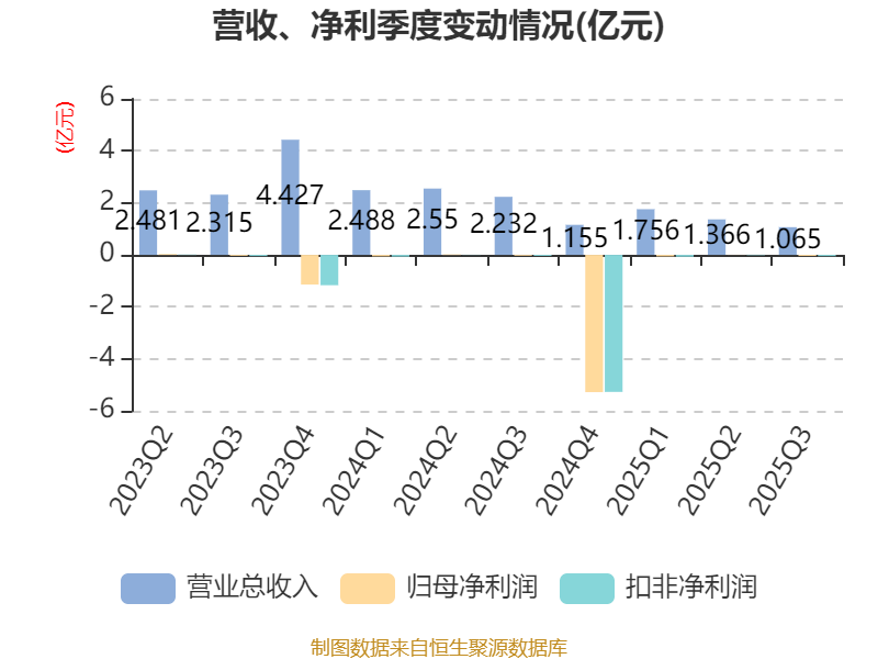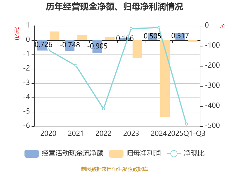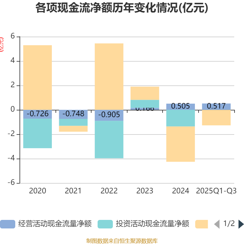2025年前三季度,公司经营活动现金流净额为5167.85万元,同比增加2.31亿元;筹资活动现金流净额-1.27亿元,同比增加5640.76万元;投资活动现金流净额-69.53万元,上年同期为-1.3亿元。