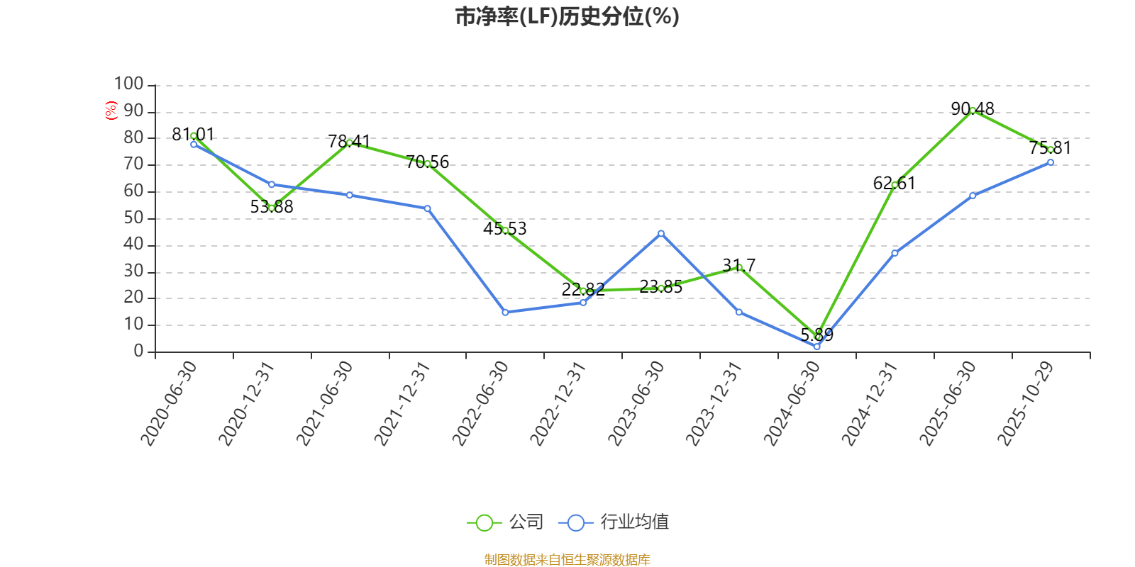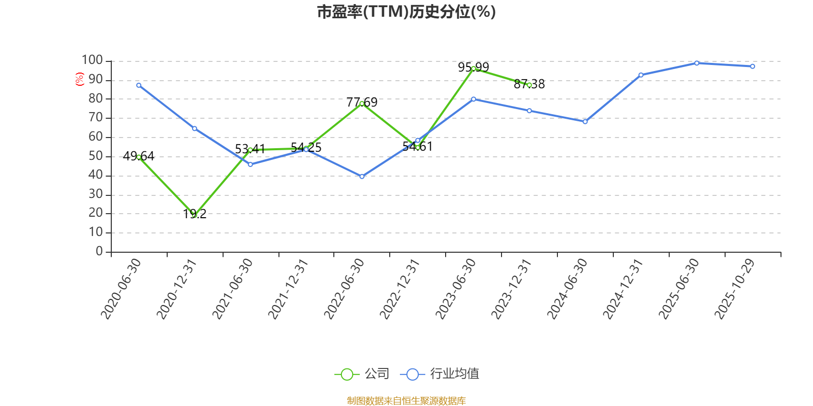 市盈率、市净率为负时,不显示当期分位数,会导致折线图中断。
