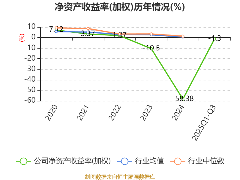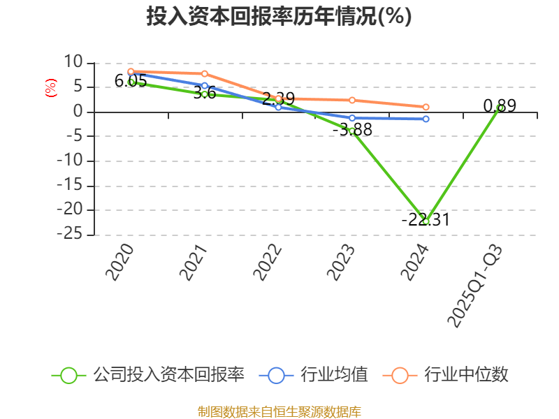 盈利能力方面, 2025年前三季度公司加权平均净资产收益率为-1.3%,同比下降0.69个百分点。公司2025年前三季度投入资本回报率为0.89%,较上年同期下降0.11个百分点。