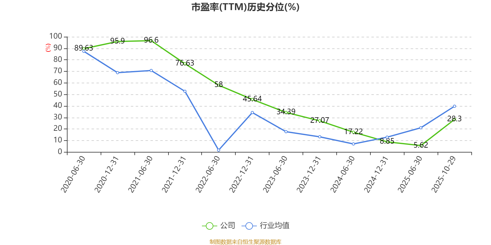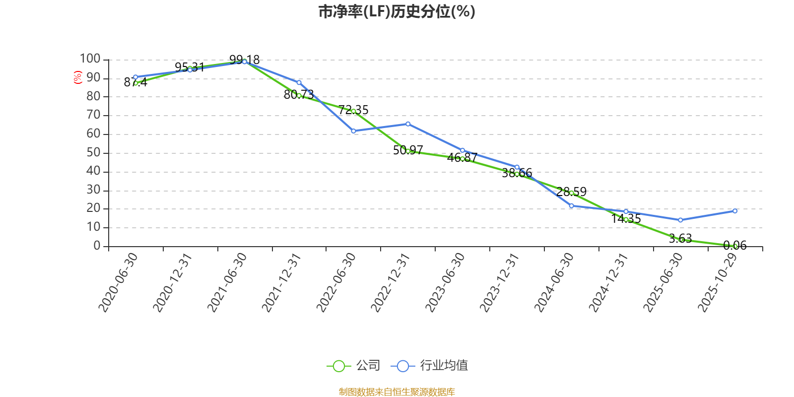 市盈率、市净率为负时,不显示当期分位数,会导致折线图中断。