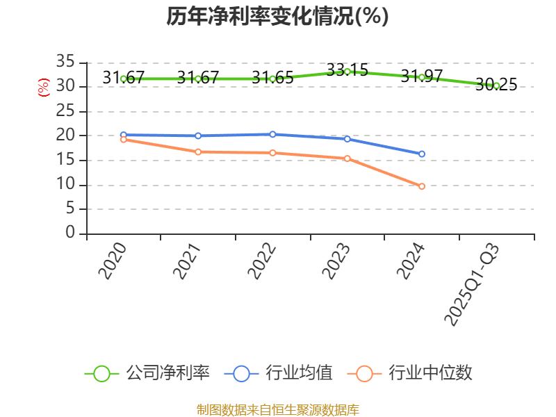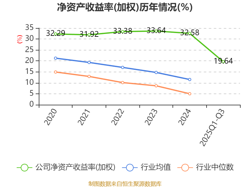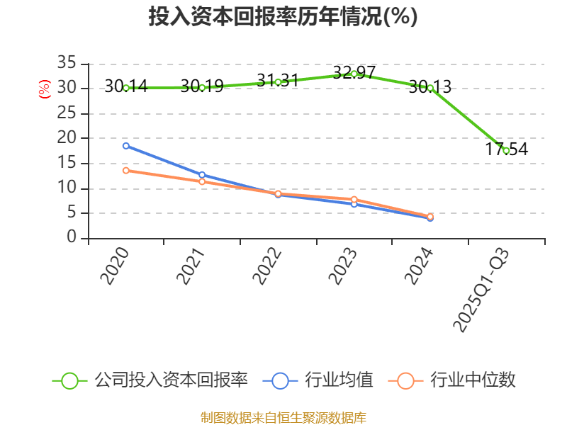 盈利能力方面, 2025年前三季度公司加权平均净资产收益率为19.64%,同比下降9.04个百分点。公司2025年前三季度投入资本回报率为17.54%,较上年同期下降9.66个百分点。