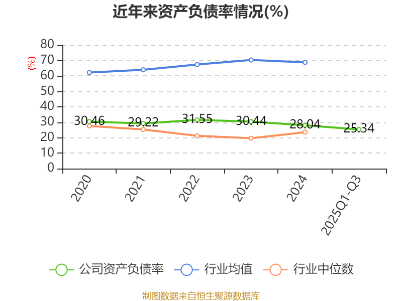 2025年前三季度,公司流动比率为2.54,速动比率为2.07。