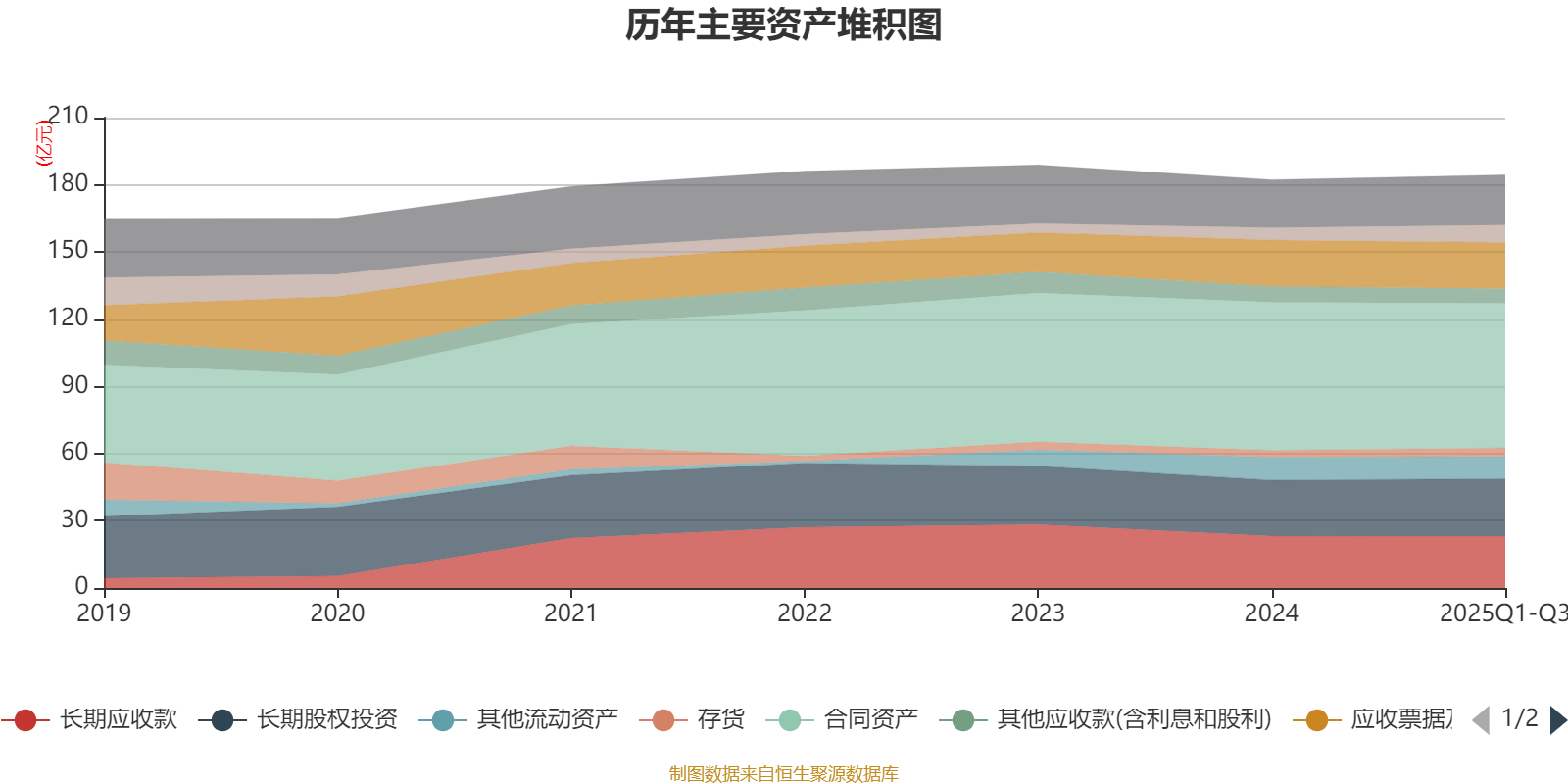 资产重大变化方面,截至2025年三季度末,公司合同资产较上年末减少2.46%,占公司总资产比重下降1.31个百分点;货币资金较上年末增加43.44%,占公司总资产比重上升1.24个百分点;存货较上年末增加26.35%,占公司总资产比重上升0.42个百分点;其他应收款(含利息和股利)较上年末减少7.04%,占公司总资产比重下降0.31个百分点。