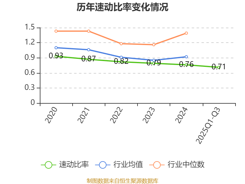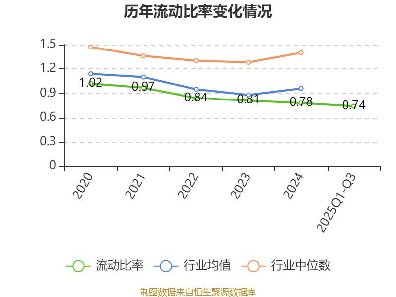 2025年前三季度,公司流动比率为0.74,速动比率为0.71。