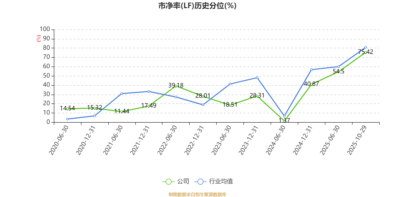 市盈率、市净率为负时,不显示当期分位数,会导致折线图中断。