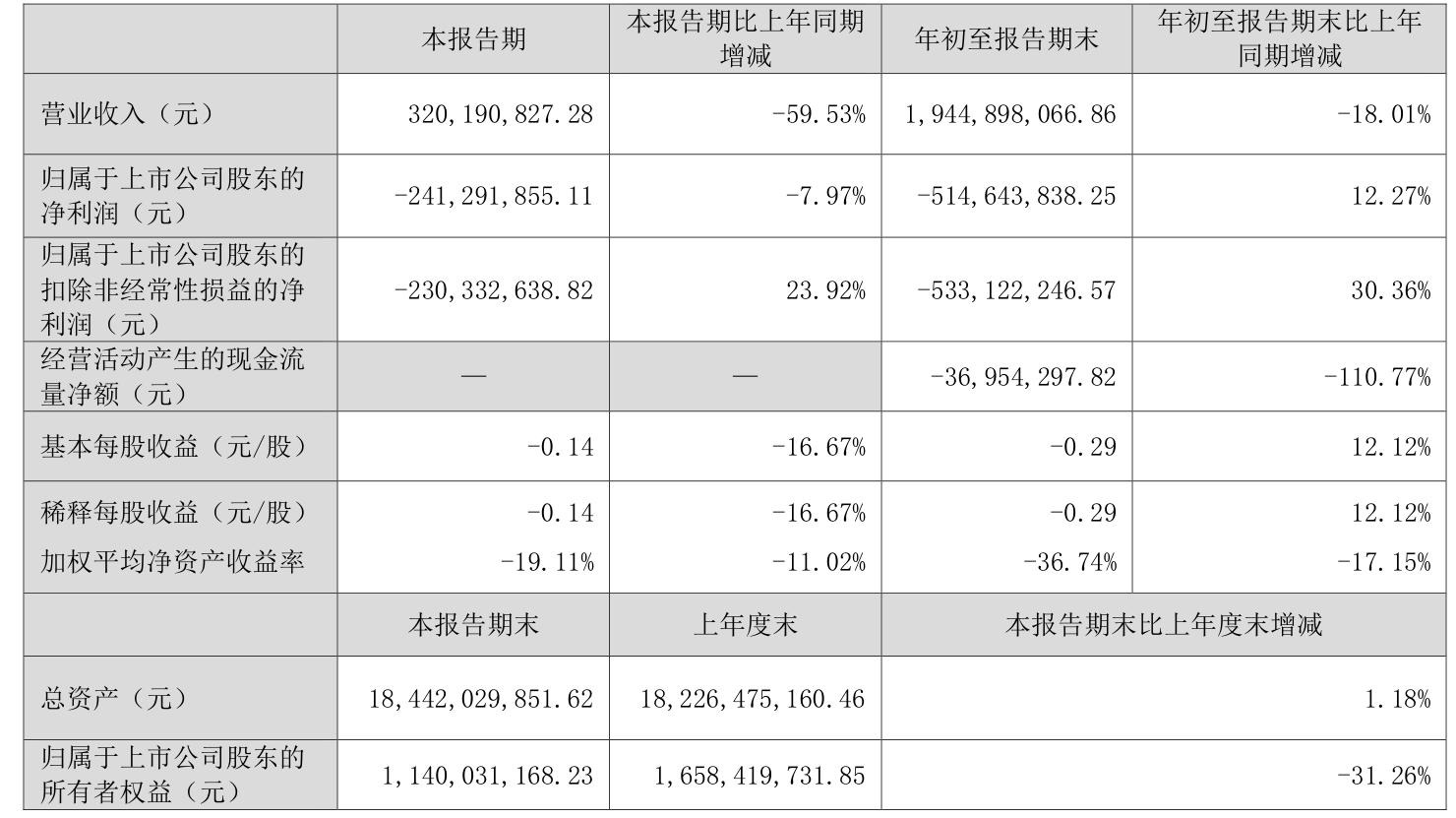 中证智能财讯棕榈股份(002431)10月30日披露2025年第三季度报告。前三季度公司实现营业总收入19.45亿元,同比下降18.01%;归母净利润亏损5.15亿元,上年同期亏损5.87亿元;扣非净利润亏损5.33亿元,上年同期亏损7.66亿元;经营活动产生的现金流量净额为-3695.43万元,上年同期为3.43亿元;报告期内,棕榈股份基本每股收益为-0.29元,加权平均净资产收益率为-36.74%。
