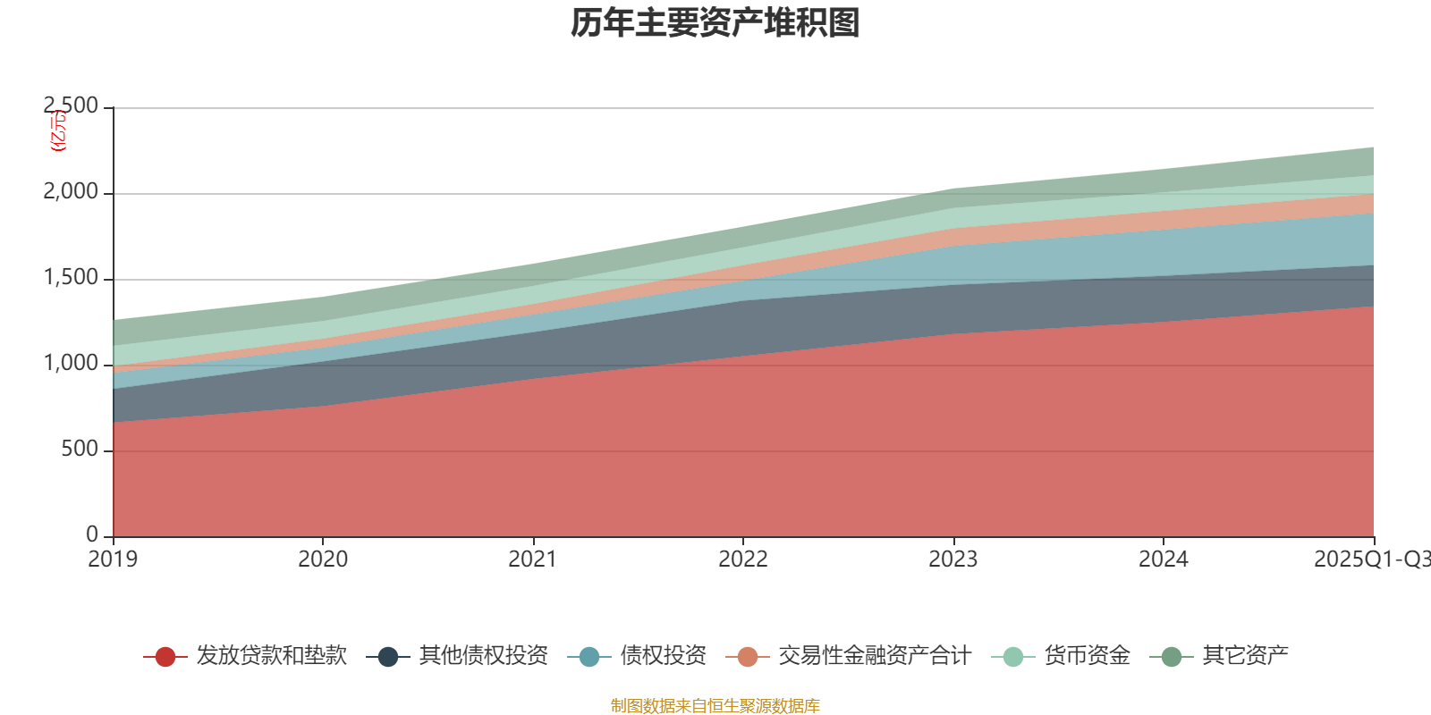 资产重大变化方面,截至2025年三季度末,公司其他债权投资较上年末减少10.85%,占公司总资产比重下降1.99个百分点;债权投资较上年末增加13.36%,占公司总资产比重上升0.88个百分点;发放贷款和垫款较上年末增加7.27%,占公司总资产比重上升0.72个百分点;拆出资金较上年末增加33.84%,占公司总资产比重上升0.63个百分点。