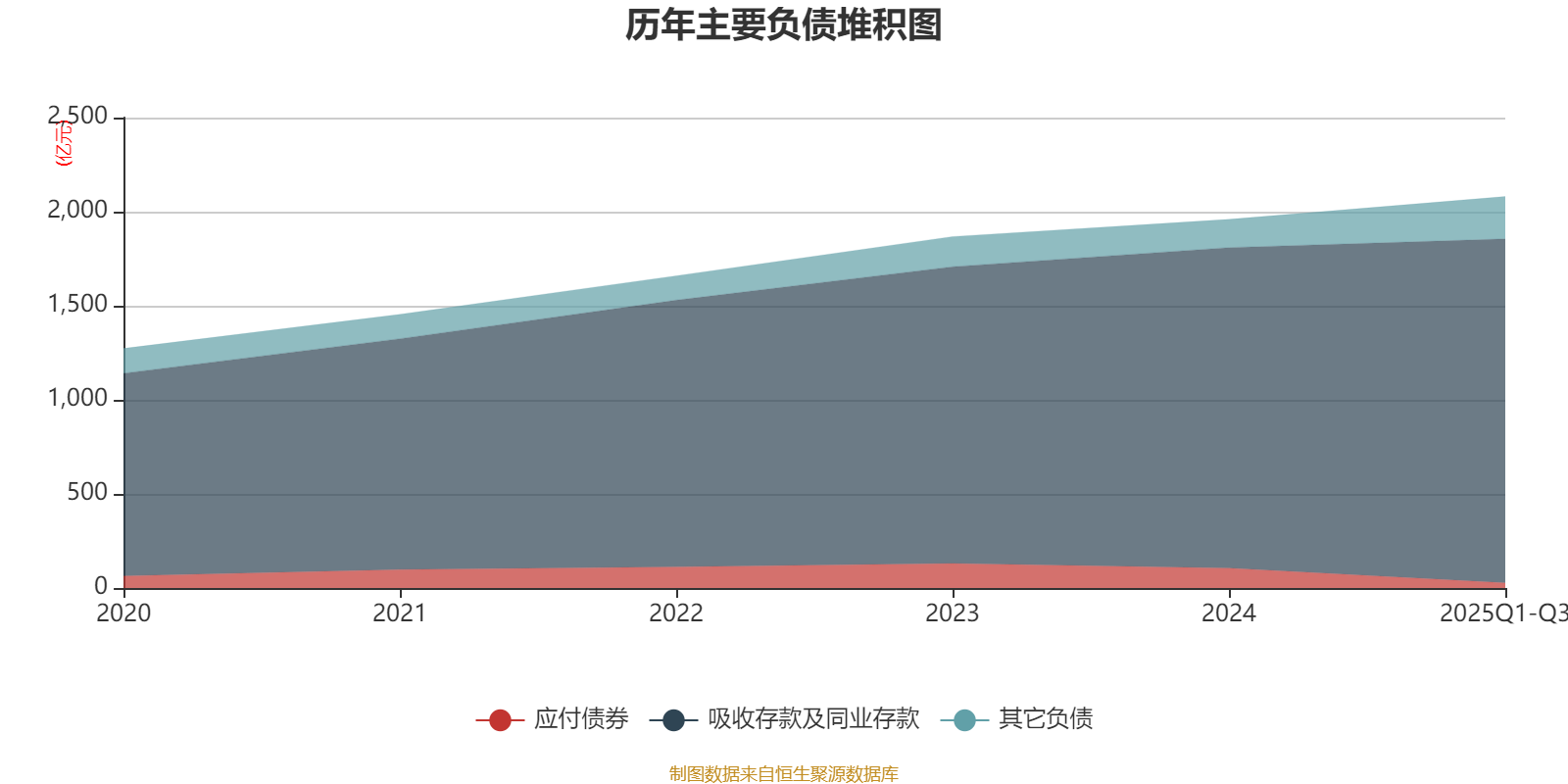 负债重大变化方面,截至2025年三季度末,公司应付债券较上年末减少74.14%,占公司总资产比重下降3.74个百分点;向中央银行借款较上年末增加224.19%,占公司总资产比重上升2.93个百分点;吸收存款及同业存款较上年末增加7.3%,占公司总资产比重上升1个百分点;卖出回购金融资产款较上年末减少9.39%,占公司总资产比重下降0.49个百分点。