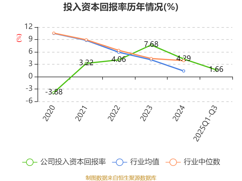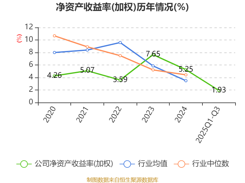 盈利能力方面, 2025年前三季度公司加权平均净资产收益率为1.93%,同比下降0.78个百分点。公司2025年前三季度投入资本回报率为1.66%,较上年同期下降0.67个百分点。