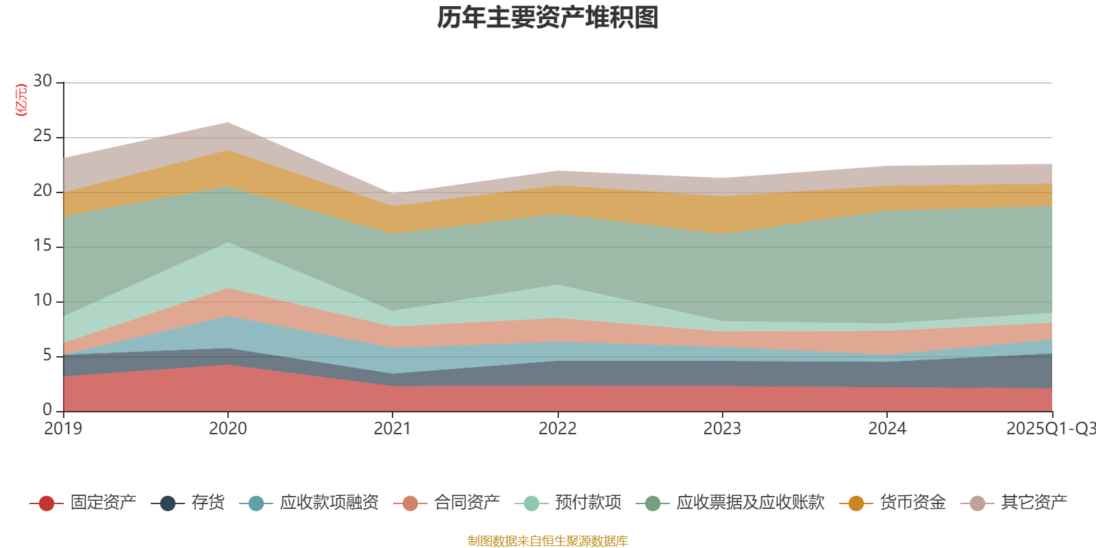 资产重大变化方面,截至2025年三季度末,公司存货较上年末增加37.49%,占公司总资产比重上升3.77个百分点;合同资产较上年末减少29.6%,占公司总资产比重下降2.94个百分点;应收票据及应收账款较上年末减少5.31%,占公司总资产比重下降2.77个百分点;应收款项融资较上年末增加97.35%,占公司总资产比重上升2.76个百分点。