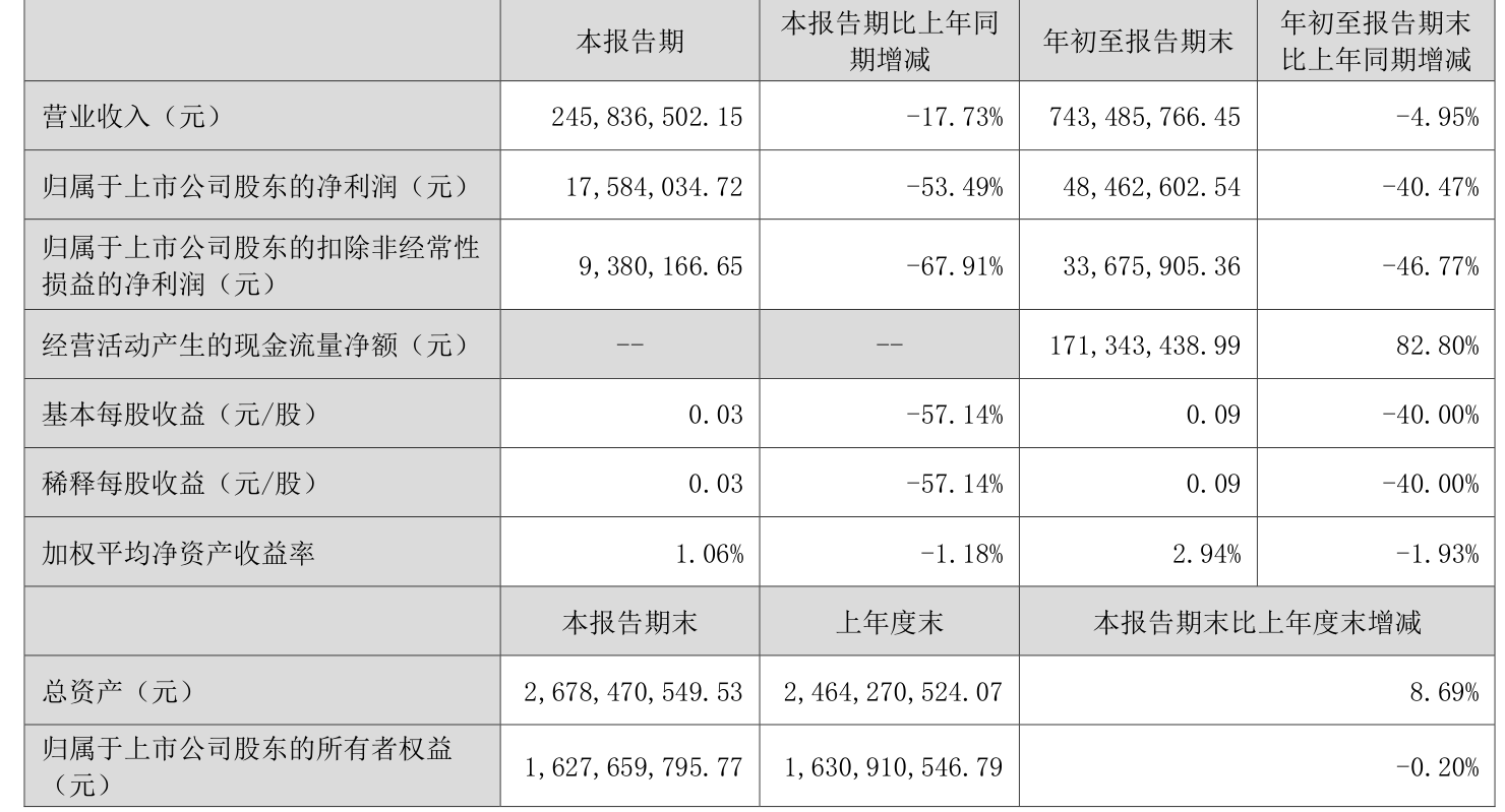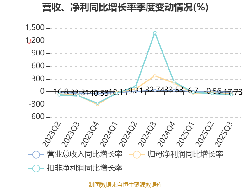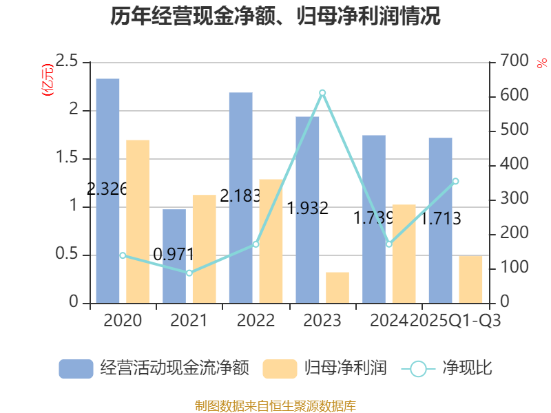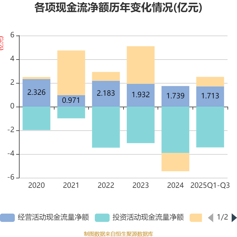 2025年前三季度,公司经营活动现金流净额为1.71亿元,同比增长82.8%;筹资活动现金流净额7997.15万元,同比增加1.91亿元;投资活动现金流净额-3.44亿元,上年同期为-1.34亿元。