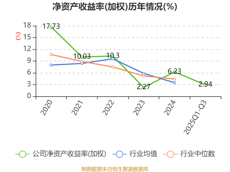 盈利能力方面, 2025年前三季度公司加权平均净资产收益率为2.94%,同比下降1.93个百分点。公司2025年前三季度投入资本回报率为1.94%,较上年同期下降1.44个百分点。