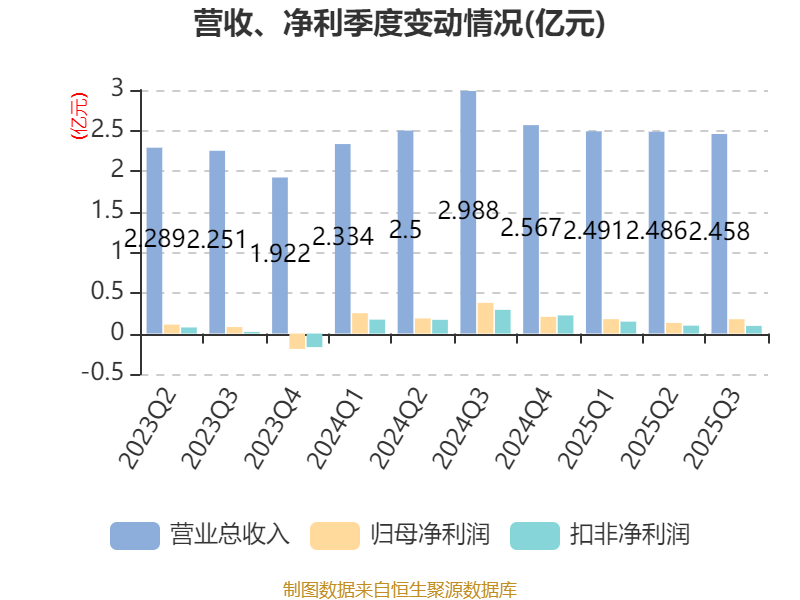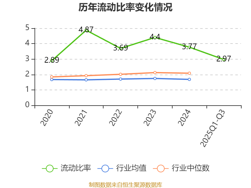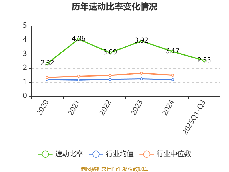 2025年前三季度,公司流动比率为2.97,速动比率为2.53。