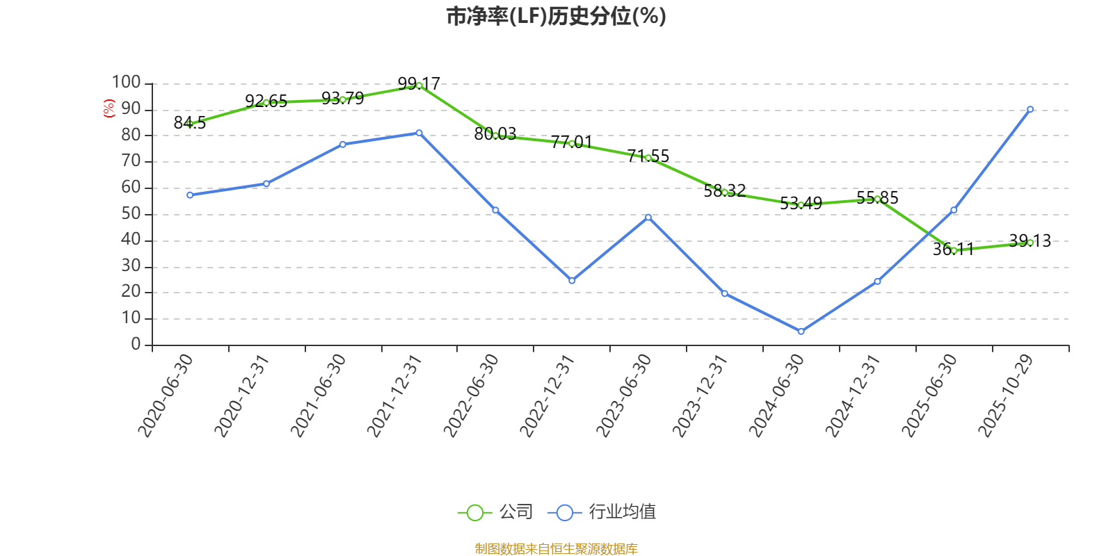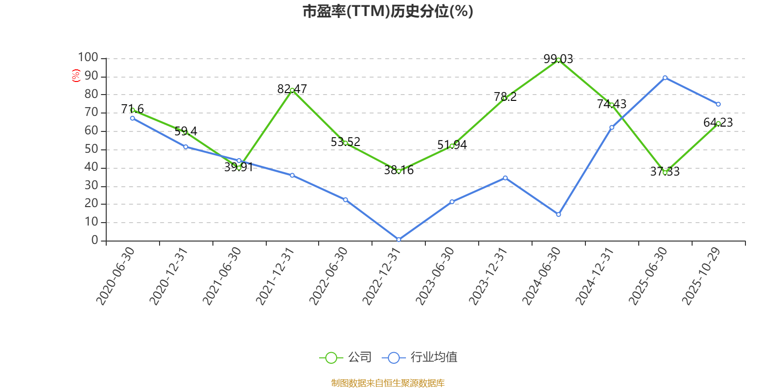 市盈率、市净率为负时,不显示当期分位数,会导致折线图中断。