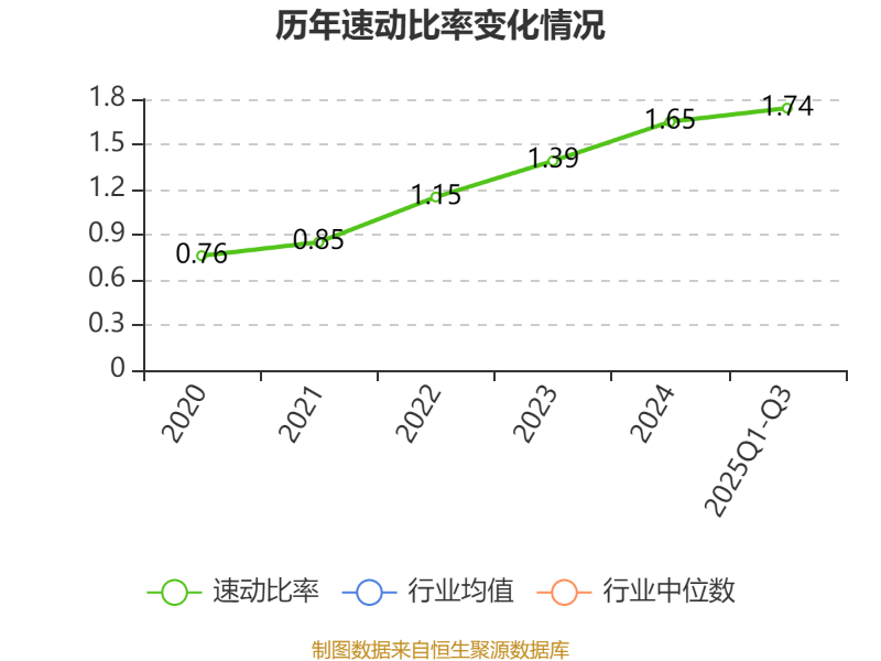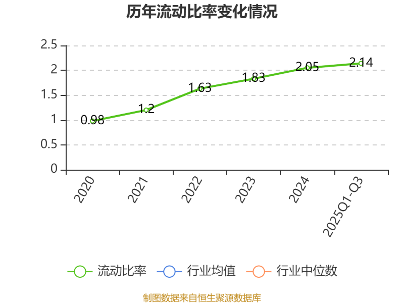 2025年前三季度,公司流动比率为2.14,速动比率为1.74。