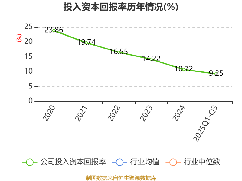 盈利能力方面, 2025年前三季度公司加权平均净资产收益率为10.42%。公司2025年前三季度投入资本回报率为9.25%,较上年同期下降0.43个百分点。