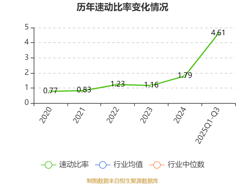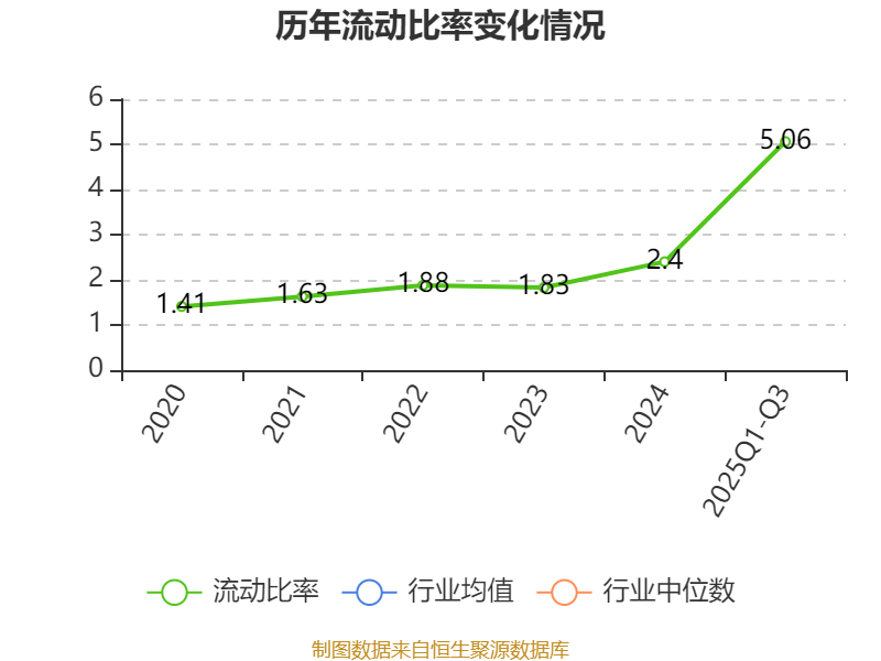2025年前三季度,公司流动比率为5.06,速动比率为4.61。