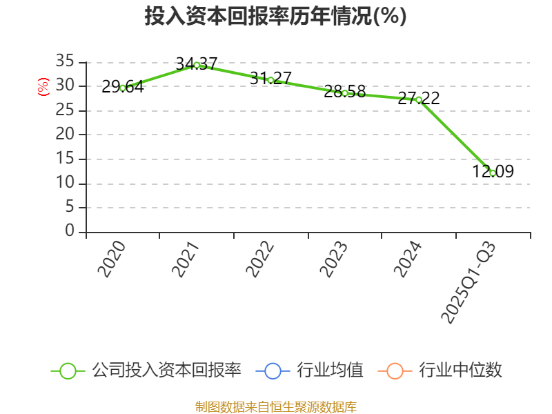 盈利能力方面, 2025年前三季度公司加权平均净资产收益率为19.11%。公司2025年前三季度投入资本回报率为12.09%,较上年同期下降39.03个百分点。