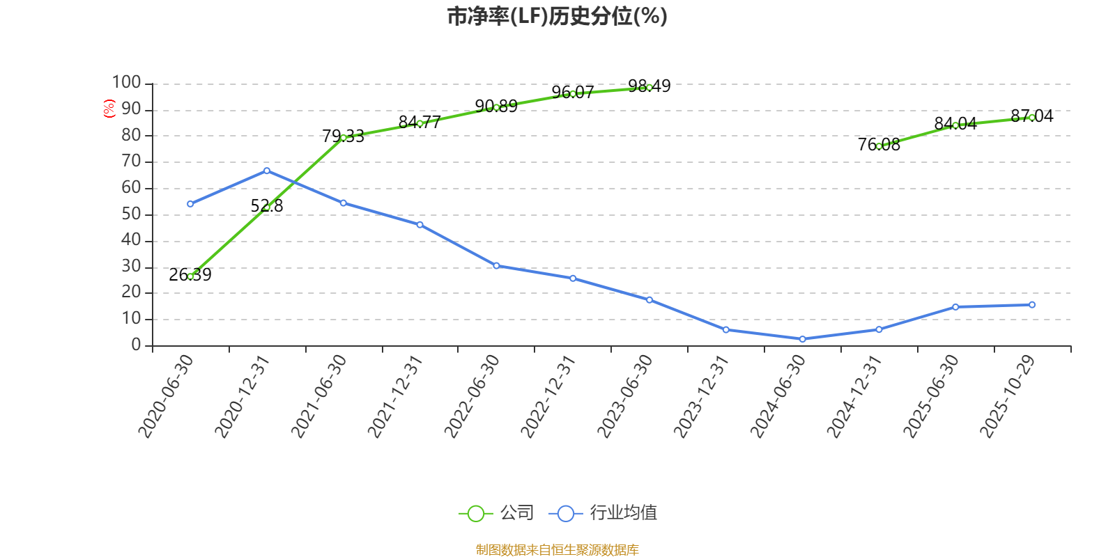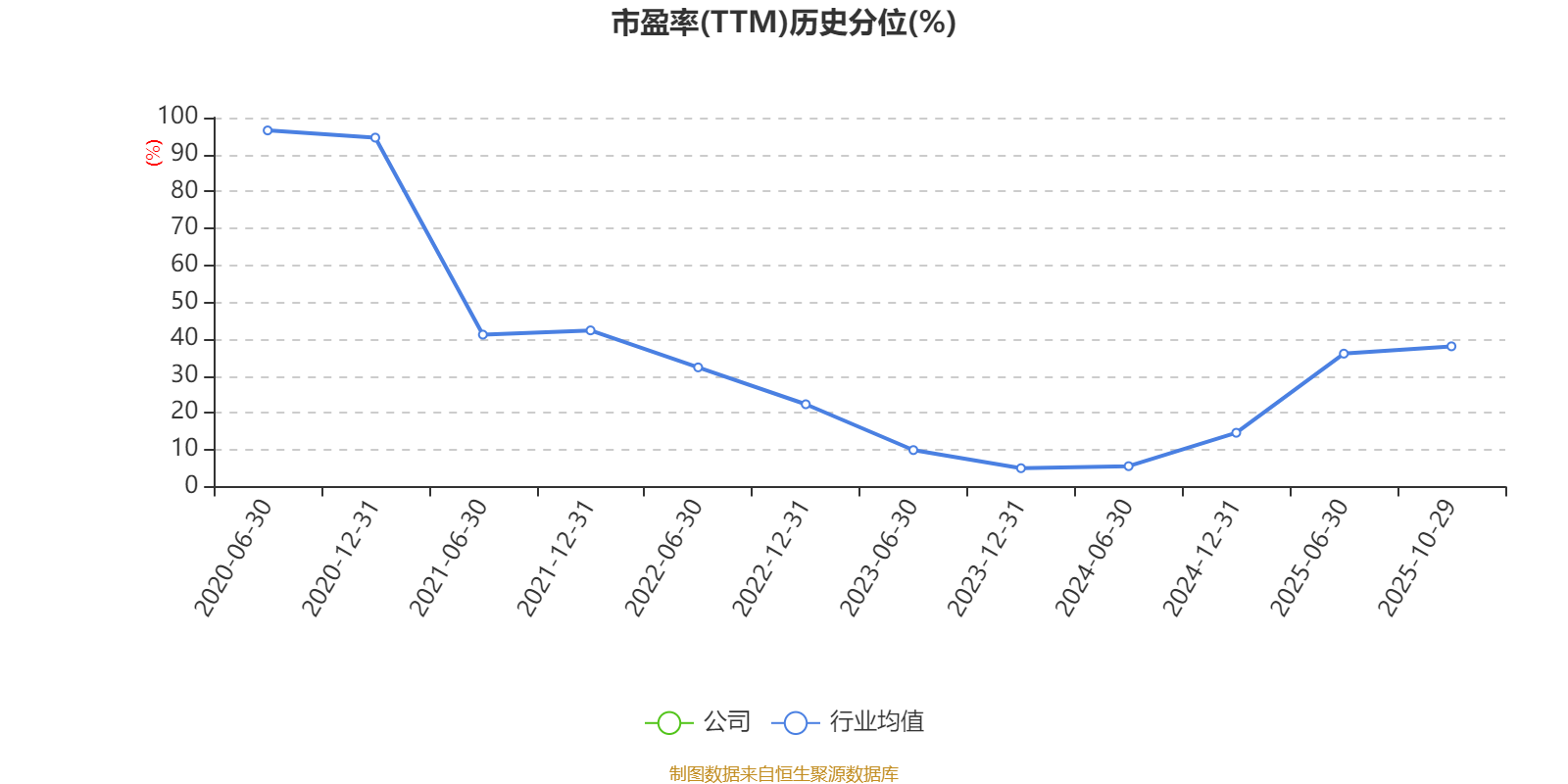 市盈率、市净率为负时,不显示当期分位数,会导致折线图中断。