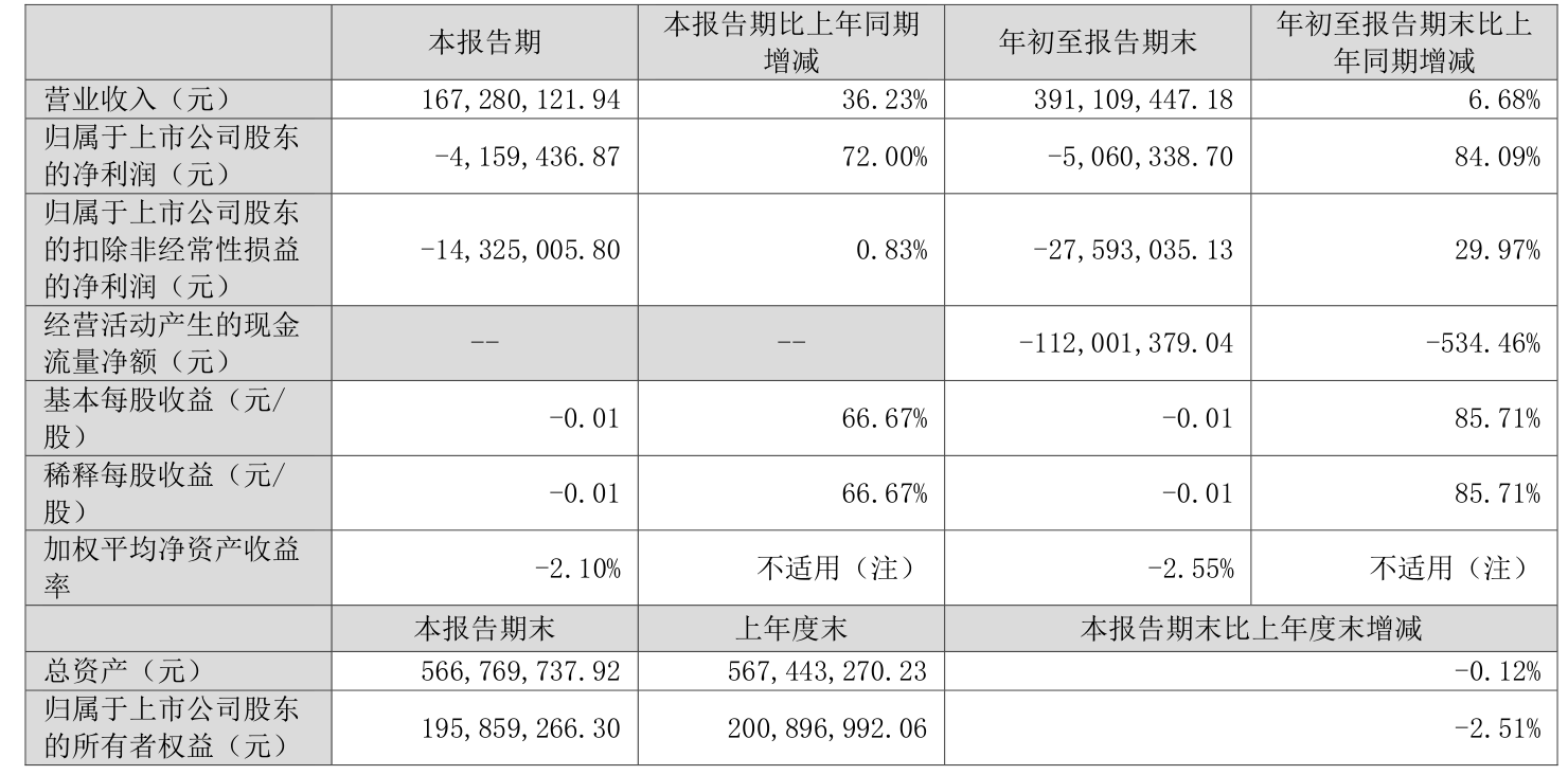 中证智能财讯新宁物流(300013)10月30日披露2025年第三季度报告。前三季度公司实现营业总收入3.91亿元,同比增长6.68%;归母净利润亏损506.03万元,上年同期亏损3180.66万元;扣非净利润亏损2759.3万元,上年同期亏损3940.28万元;经营活动产生的现金流量净额为-1.12亿元,上年同期为2577.92万元;报告期内,新宁物流基本每股收益为-0.01元,加权平均净资产收益率为-2.55%。