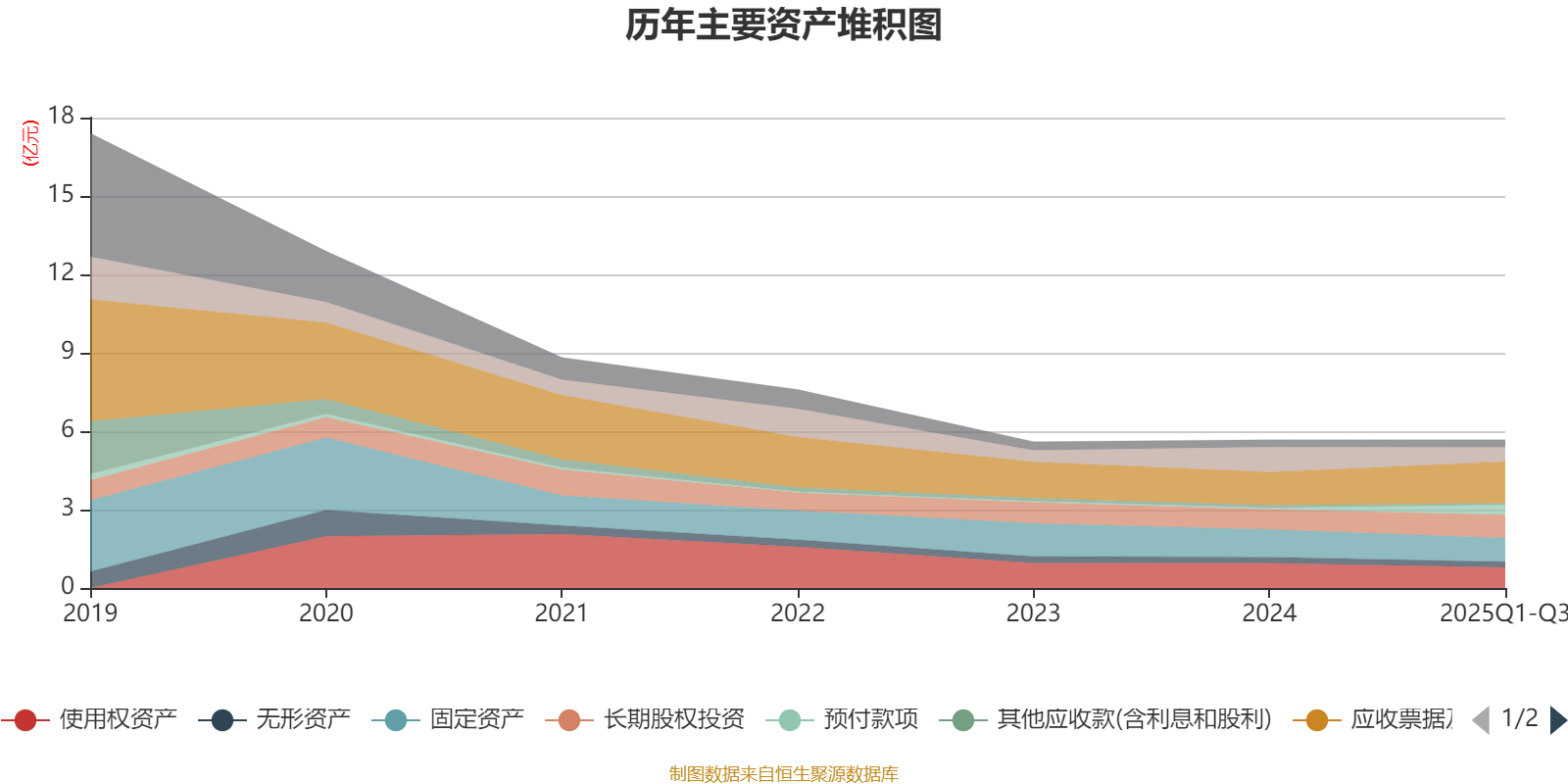 资产重大变化方面,截至2025年三季度末,公司货币资金较上年末减少43.45%,占公司总资产比重下降7.28个百分点;预付款项较上年末增加627.2%,占公司总资产比重上升5.8个百分点;应收票据及应收账款较上年末增加25.68%,占公司总资产比重上升5.76个百分点;使用权资产较上年末减少16.35%,占公司总资产比重下降2.71个百分点。