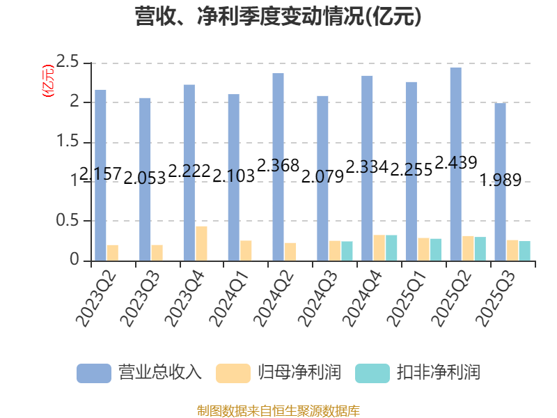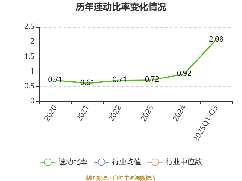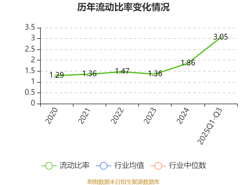 2025年前三季度,公司流动比率为3.05,速动比率为2.08。