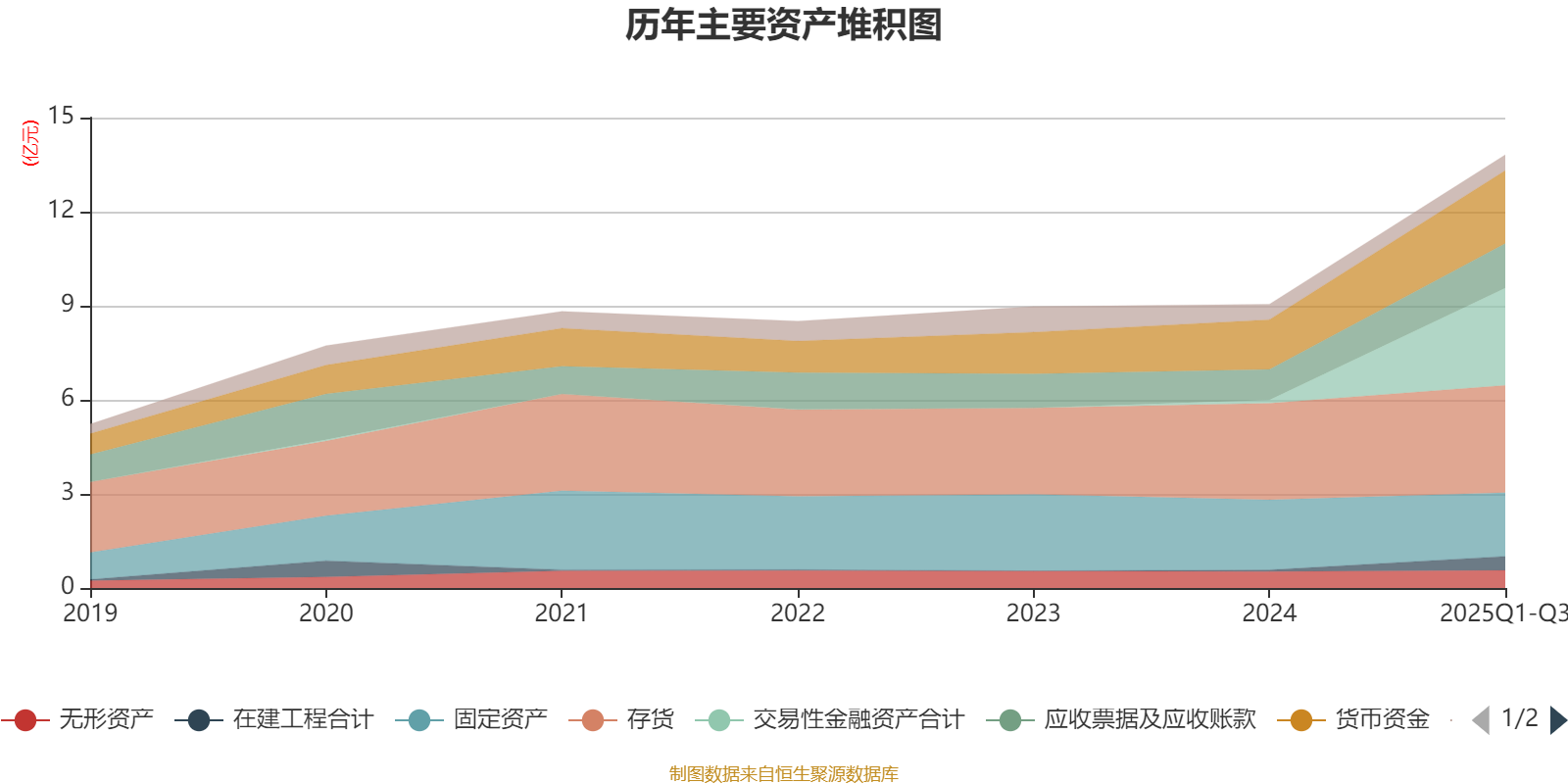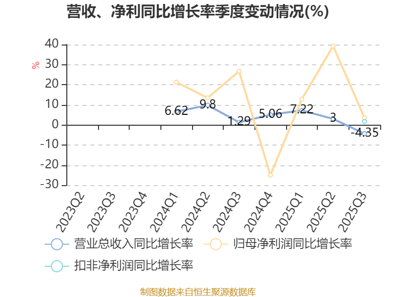 资产重大变化方面,截至2025年三季度末,公司交易性金融资产合计较上年末增加2883.64%,占公司总资产比重上升21.31个百分点;固定资产较上年末减少9%,占公司总资产比重下降9.96个百分点;存货较上年末增加10.98%,占公司总资产比重下降9.29个百分点;在建工程合计较上年末增加786.86%,占公司总资产比重上升2.7个百分点。