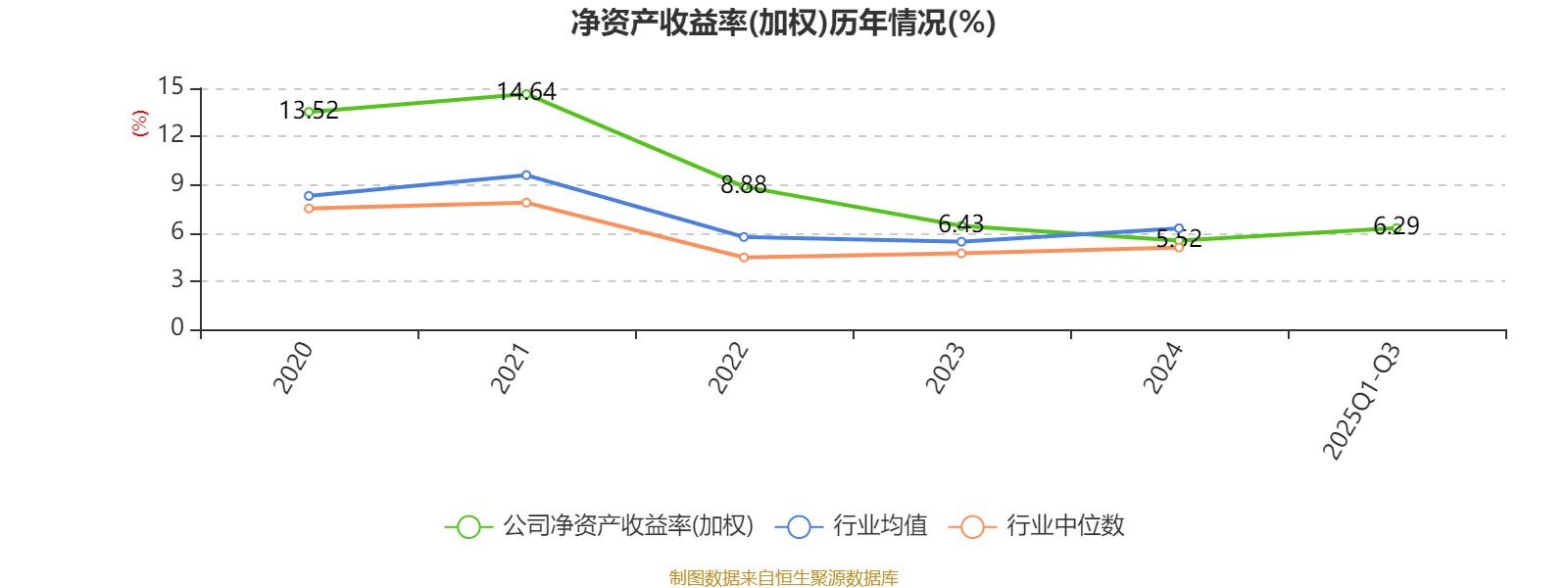 盈利能力方面, 2025年前三季度公司加权平均净资产收益率为6.29%,同比上升3.65个百分点。