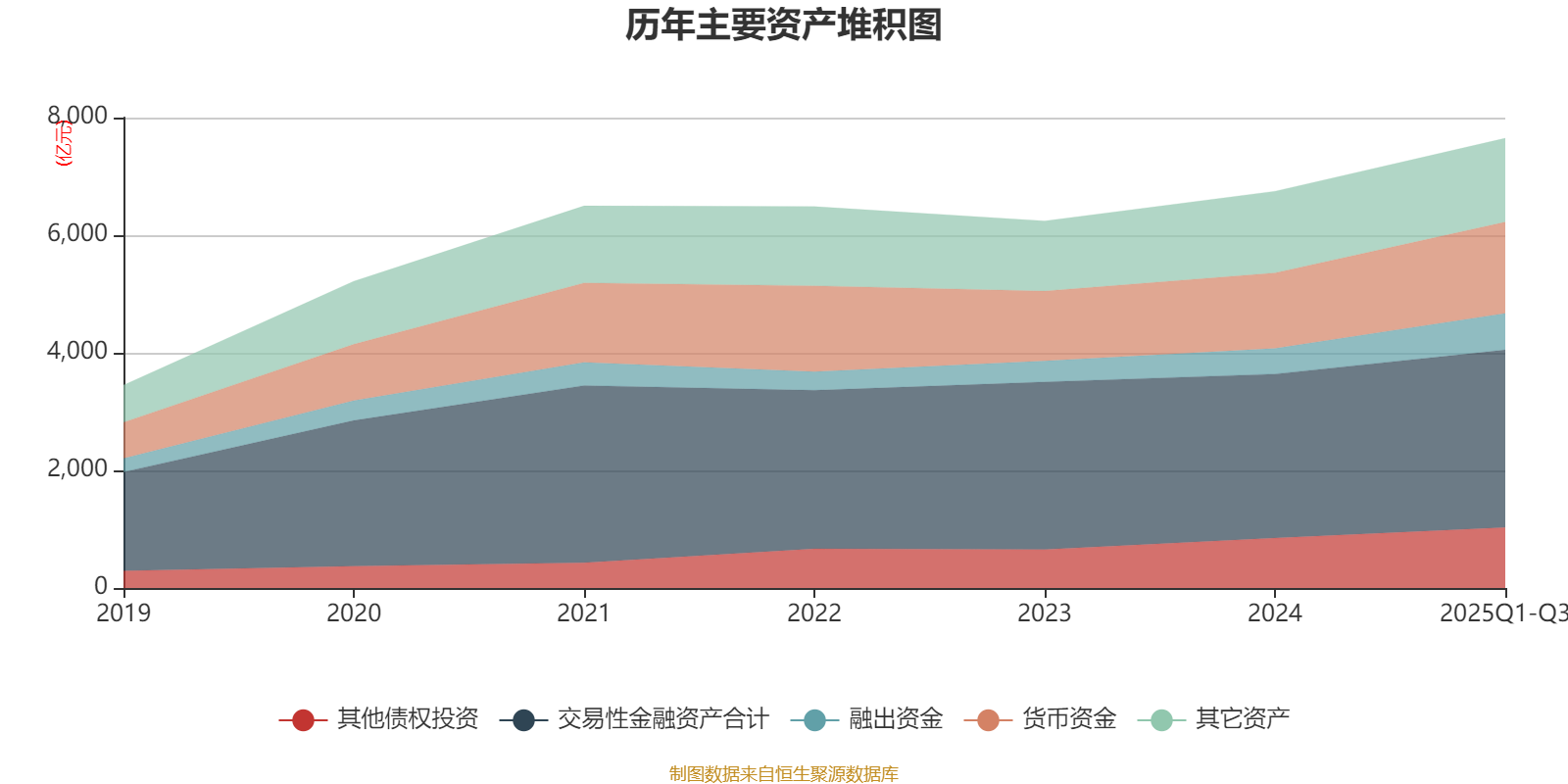 资产重大变化方面,截至2025年三季度末,公司交易性金融资产合计较上年末增加8.22%,占公司总资产比重下降1.88个百分点;融出资金较上年末增加43.06%,占公司总资产比重上升1.69个百分点;买入返售金融资产较上年末减少34.17%,占公司总资产比重下降1.41个百分点;货币资金较上年末增加20.83%,占公司总资产比重上升1.25个百分点。