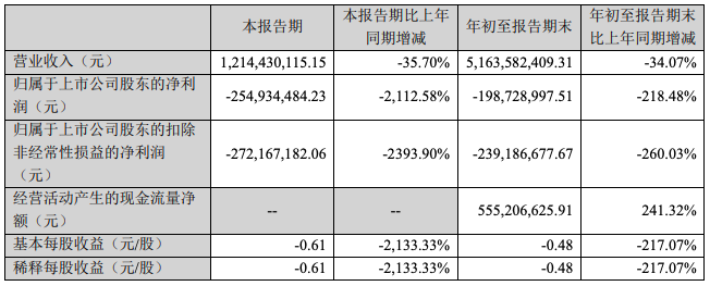 今年前三季度,公司计提各项资产减值准备合计3.29亿元,相应资产减值损失计入2025年前三季度当期损益。其中,资产减值损失达3.25亿元,同比暴增超过114.63倍,拖累公司的业绩表现。